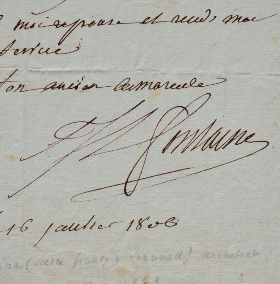 Lettre de l'architecte Pierre Fontaine au sculpteur Dumont, au sujet de la décoration de la salle des maréchaux du Palais des Tuileries.