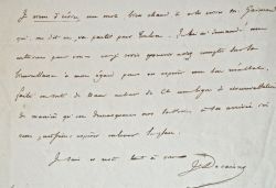 "Je viens d'écrire un mot bien chaud à votre voisin M. Gaimard qui, me dit-on, va partir pour Toulon. Je lui ai demandé une entrevue pour vous, et je crois pouvoir assez compter sur sa bienveillance à mon égard pour en espérer un bon résultat. Faites en sorte de tracer autour du Ct une ligne de circonvallation de manière qu'en démasquant nos batteries à son arrivée ici nous puissions espérer enlever la place".