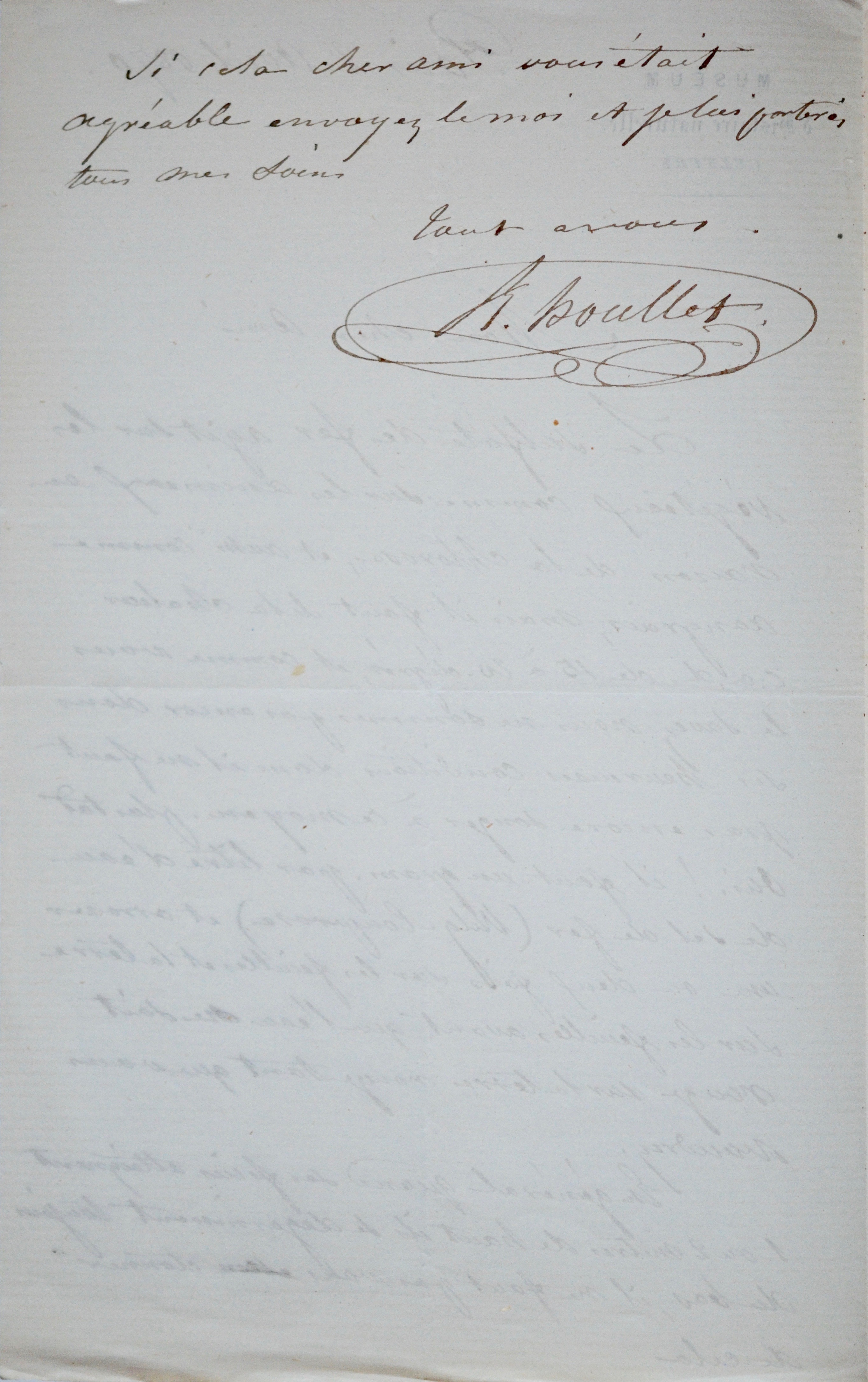 Romain Jean-Baptiste Houllet (Paris, 1815/1890)Deux lettres de Romain Houllet, jardinier en chef des serres du Muséum national d'Histoire naturelle, et notamment des serres chaudes, relatives à la botanique :
