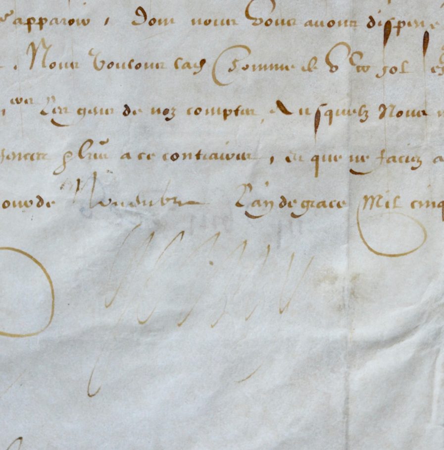 Pièce signée par Henri IV, adressée à ses conseillers et trésoriers François Hotman et Balthazar Gobelin.