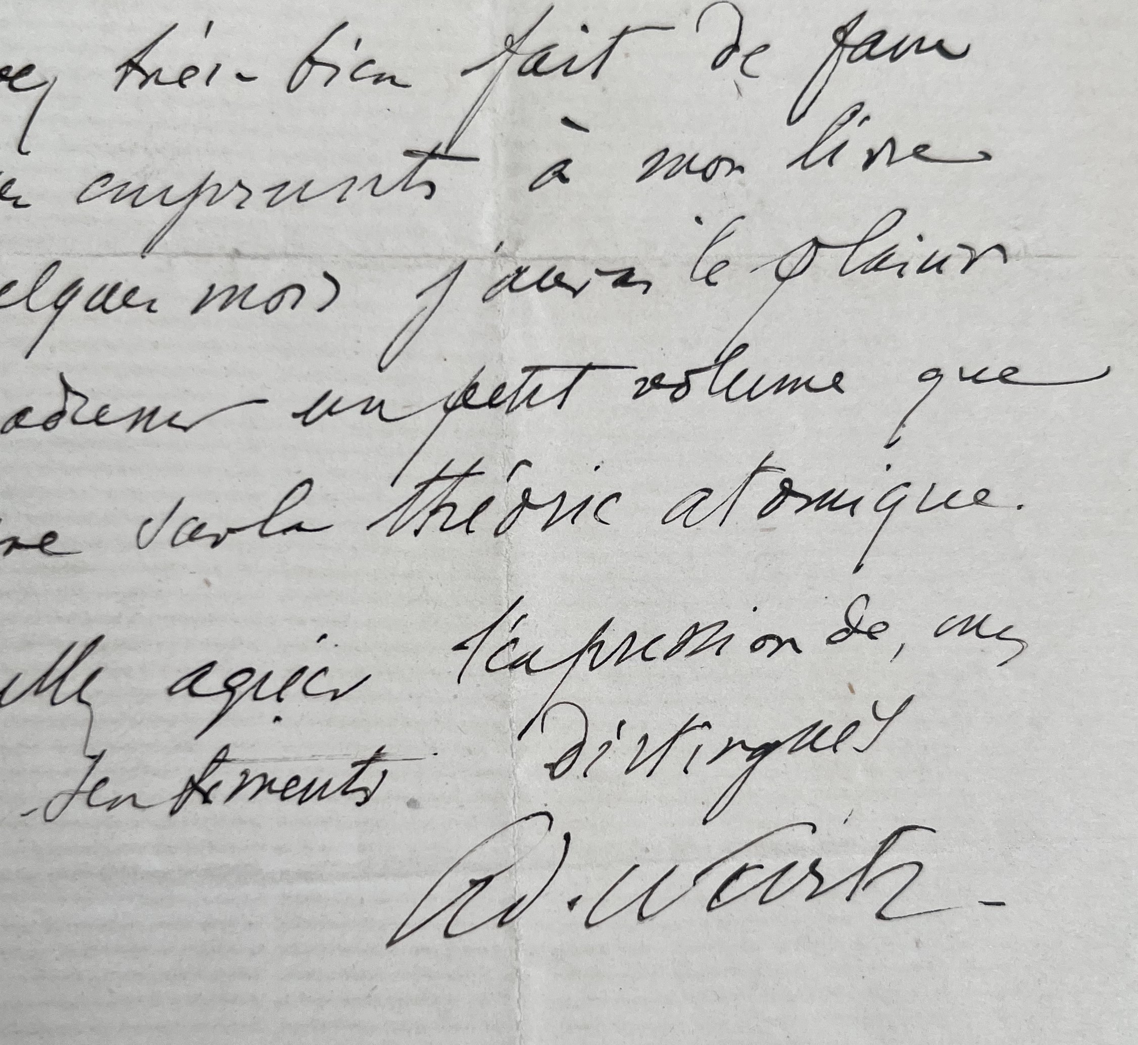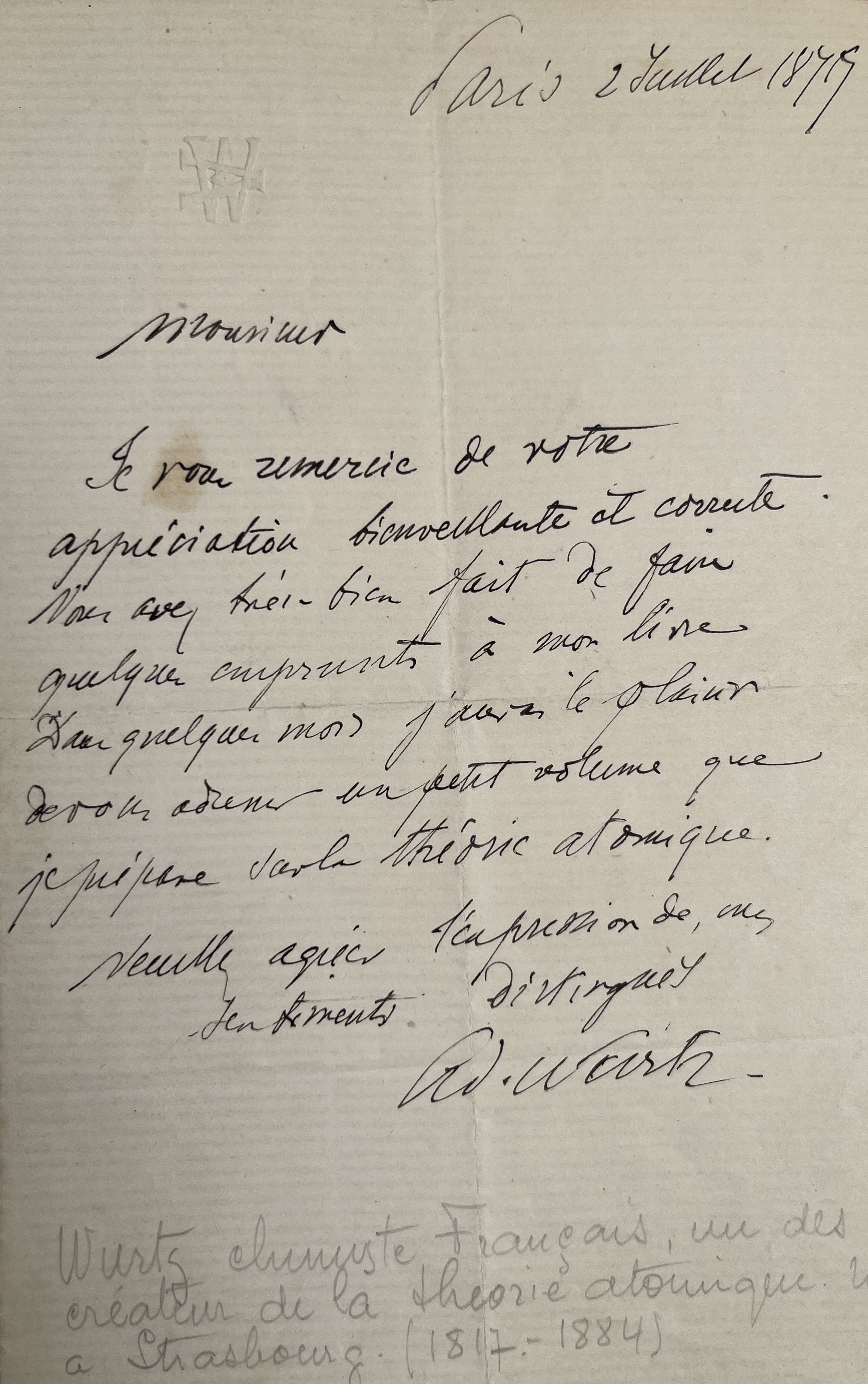 Wurtz fera effectivement paraître son ouvrage le plus célèbre peu de temps après : La Théorie atomique, préfacé de Charles Friedel [Baillière, 1879].