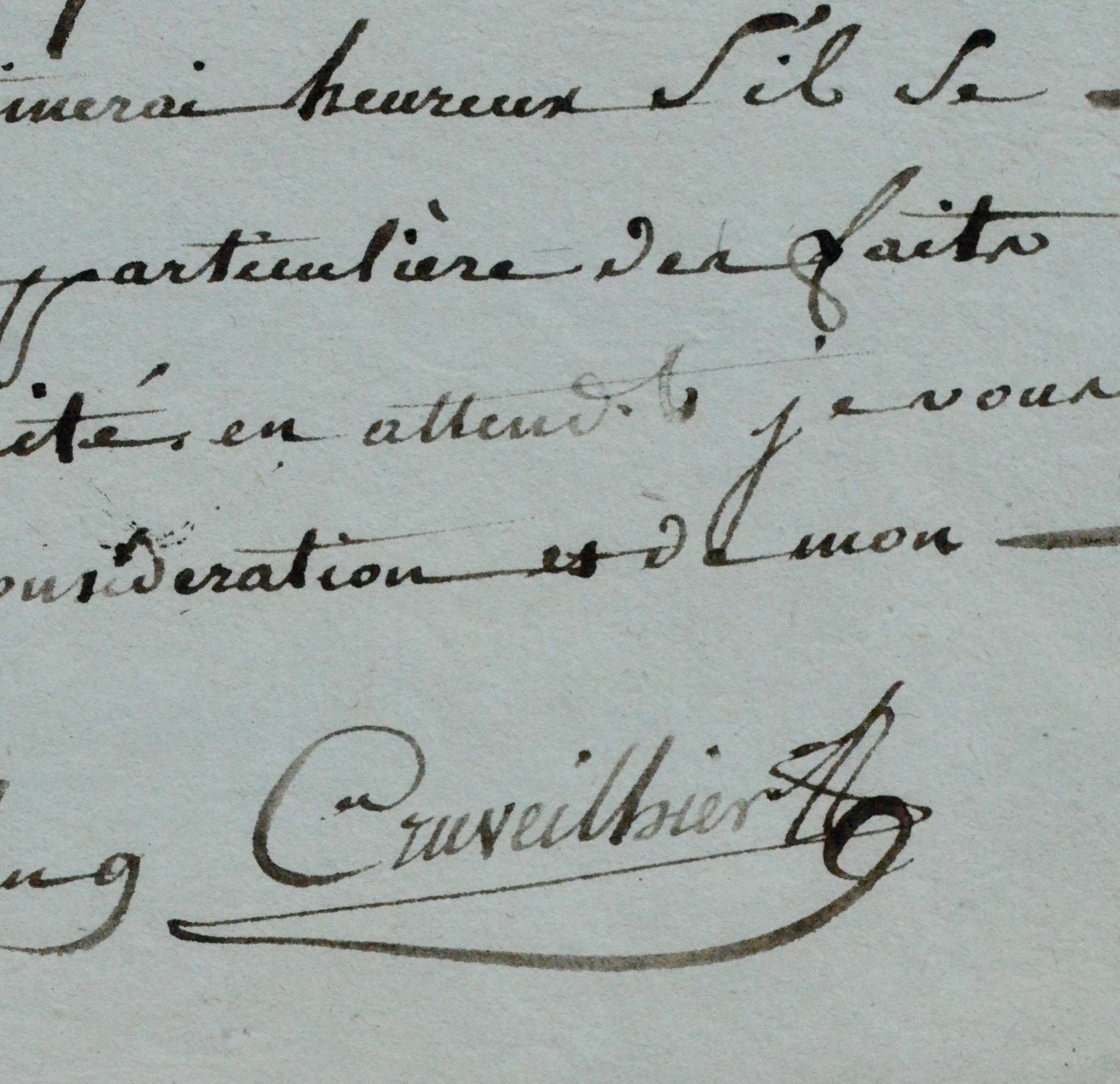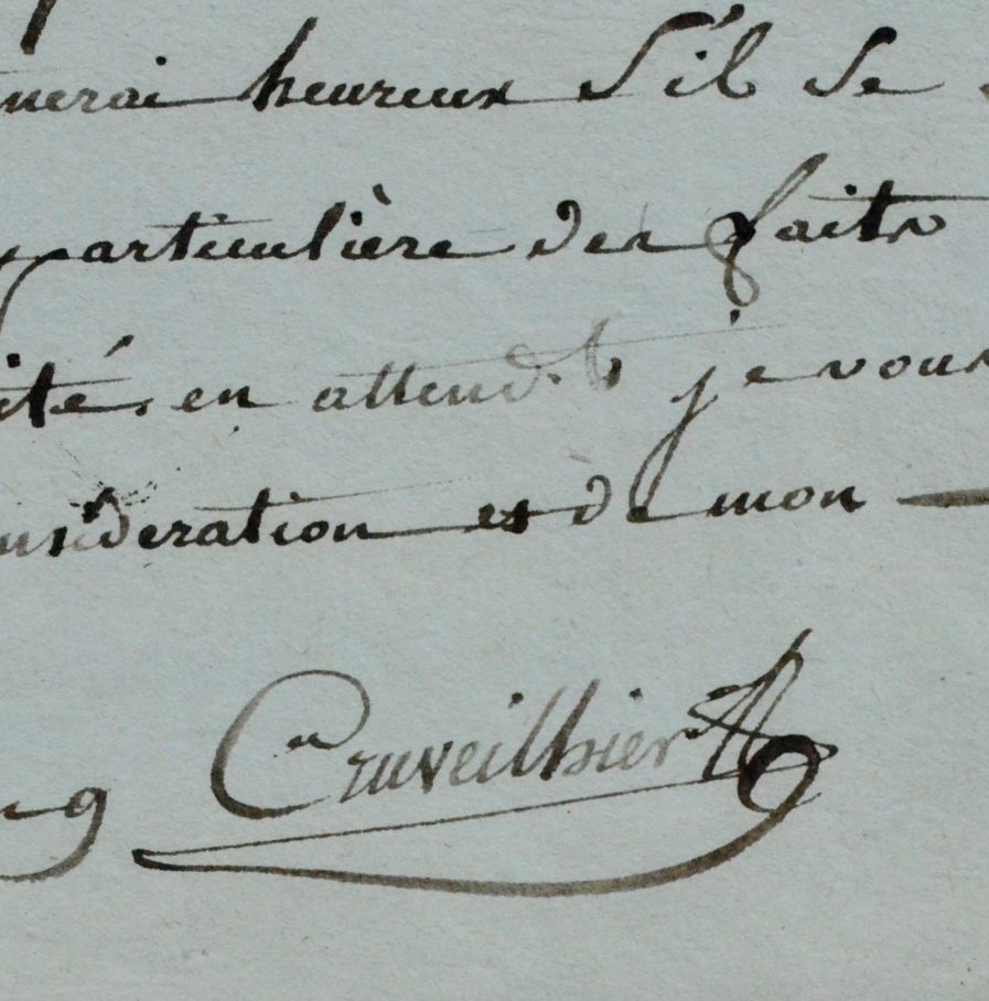 "La difficulté de me procurer du fluide vaccin, m'a privé jusqu'à ce jour, de faire jouir mon pays des avantages de la vaccination. L'interest que vous mettez à proposer cette importante découverte, me fait prendre la liberté de m'adresser à vous, pour que vous me fassiez l'amitié de me faire passer par la poste du fluide vaccin, déposé sur le verre ou de telle manière que vous jugerez la plus convenable, pour qu'il me parvienne dans son intégrité, afin que mes premiers essais soient couronnés de succès [...]".
