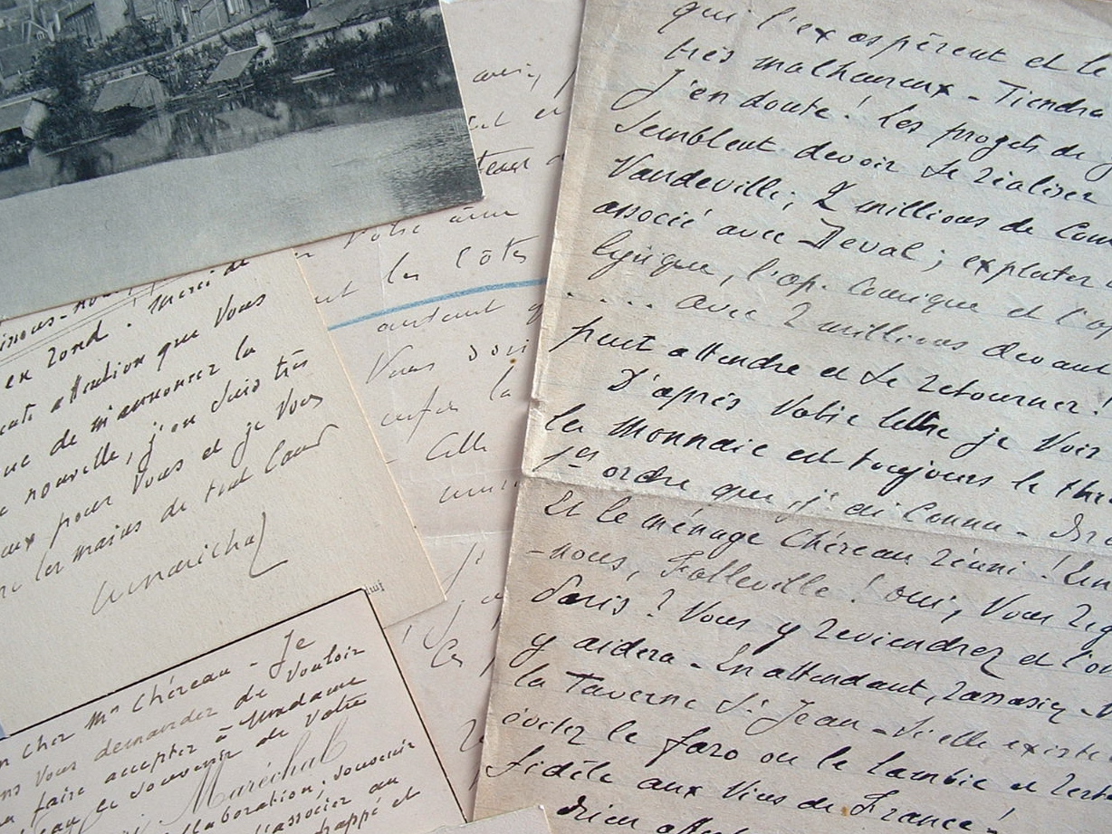 Henri Maréchal (Paris, 1842/1924)Henri Maréchal annonce la reprise des Amoureux de Catherine [créé en 1876] (1915), les répétitions de son opéra Ping-Sin «dans mon antre» et, avec humour, les raisons de son absence. «Je lis à l'instant que P.S. [Ping-Sin] a pris la place des A. de C. [Amants de Catherine] sur l'affiche de ce jour. Je bénis les dieux et l'Olympe tout entier [...]» (1918). Etant à Venise, il a appris le triomphe des Amants de Catherine à Bruxelles. «Ici, on continue les représentations ; il y eut même un coup de dé, il y a un mois, qui enfonce Chéreau lui-même ! C'était un samedi. Le soir verglas ; pas moyen de charioter les décors ! On rejoua donc le lendemain dimanche avec 14000 de recette. Si je vous surprends jamais à dire du mal du verglas, vous aurez affaire à moi ! Quant à P.S., on est toujours sur le point........ mais vous savez que sur le point d'Avignon, on y danse, on y danse...... C'était prévu. Et je continue à recevoir des lettres de gens inconnus qui m'écrivent des choses fort aimables. C'est toujours cela ! Je pense qu'à Bruxelles la pièce intéresserait le public...; enfin, on verra bien et, ici encore, merci d'y travailler. Je ne vais plus que peu ou pas à l'Op. C. [opéra comique]. Pourquoi faire ? Et puis, dans l'atmosphère qui y règne, ne pas se montrer est peut-être le meilleur ! Mon pauvre Vidal se débat au milieu de mille vexations qui l'exaspèrent et le rendent très malheureux. Tiendra-t-il ? J'en doute! [...]». Il évoque encore d'autres projets (1919). Il lui adresse le premier acte de son opéra. «Pardon de vous ennuyer de cet ennuyeux travail. Puisse l'enchanteur de ma poésie élever votre âme aux sommets où l'on se tient les côtes. Je vous demande de dire autant que vous le pouvez tout ce que vous disiez dans la première version [...]. Vendredi, je vous porterai la copie du 1er acte ; j'espère que vous pourrez me donner ces petits changements du second [...]».