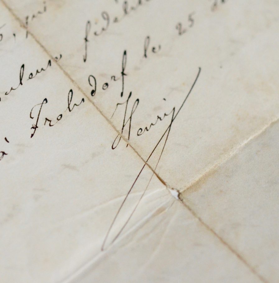 Comte de Chambord (Paris, 1820/1883)Très intéressant manuscrit de la main du comte de Chambord, mettant en place des correspondants dévoués à sa cause sur tout le territoire français, et leur donnant ses instructions en cas d'insurrection (document malheureusement abîmé, déchirures importantes aux plis)