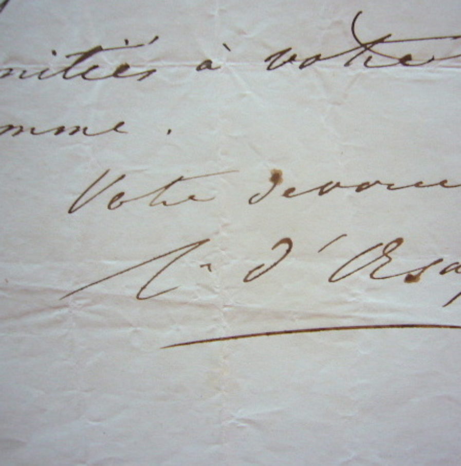 «Mercredi. Berton. Vous m'obligerez en mettant cette lettre à la Poste à Londres sitôt que vous arriverez. Amitiés à votre femme. Votre dévoué. C. d'Orsay».