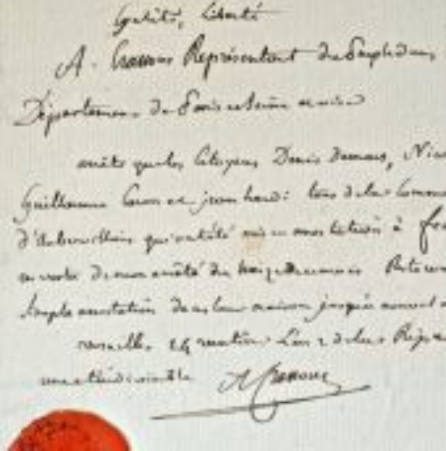 Datée du 24 ventôse an 2. Cachet de cire rouge "Représentants du Peuple Français".