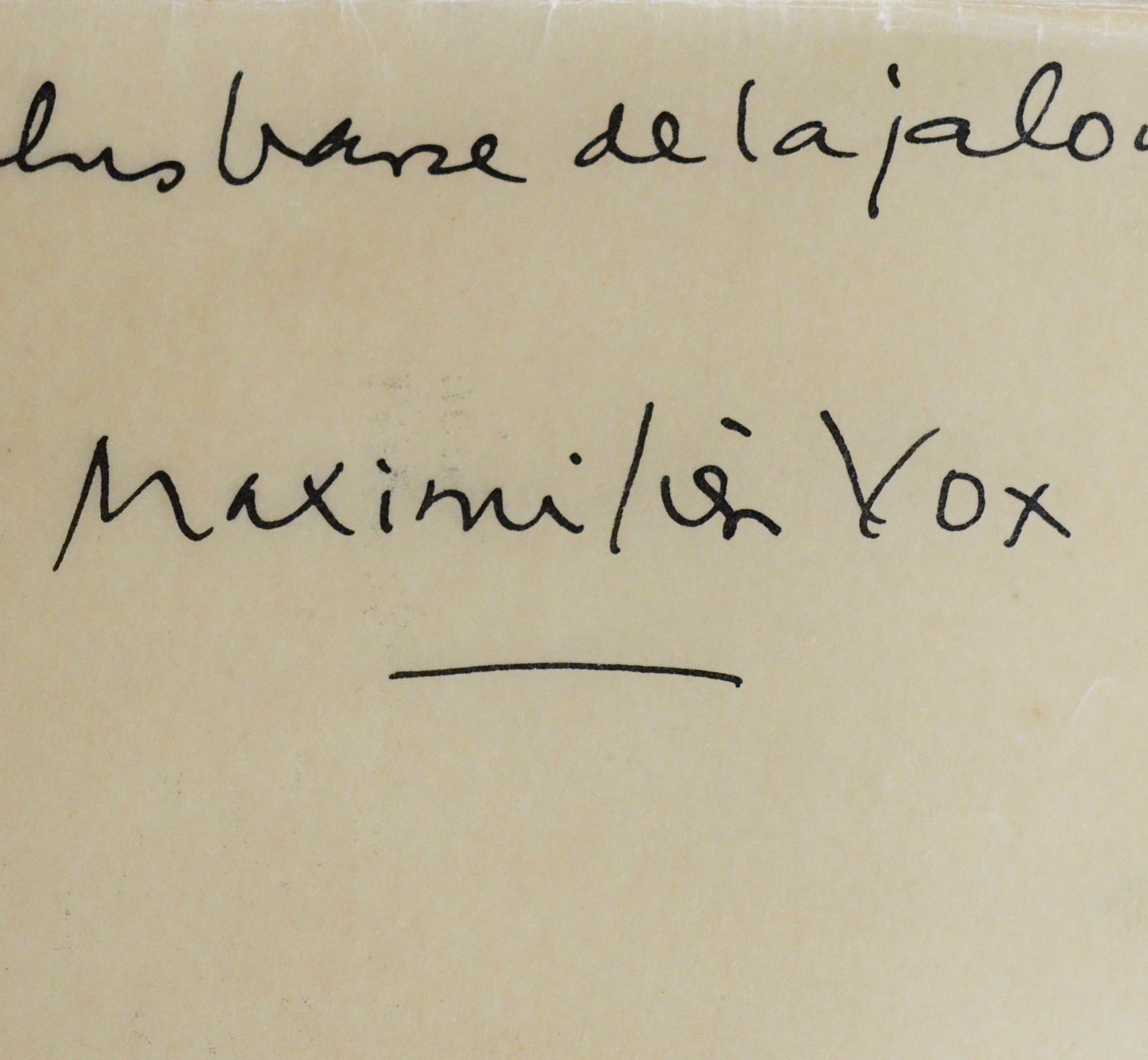 - Maximilien VOX. Le Graphisme et la vie. Manuscrit autographe signé, 4 pp. in-folio. Article paru dans Le Crapouillot de Noël 1931. Rare. Encre noire sur papier calque marron.