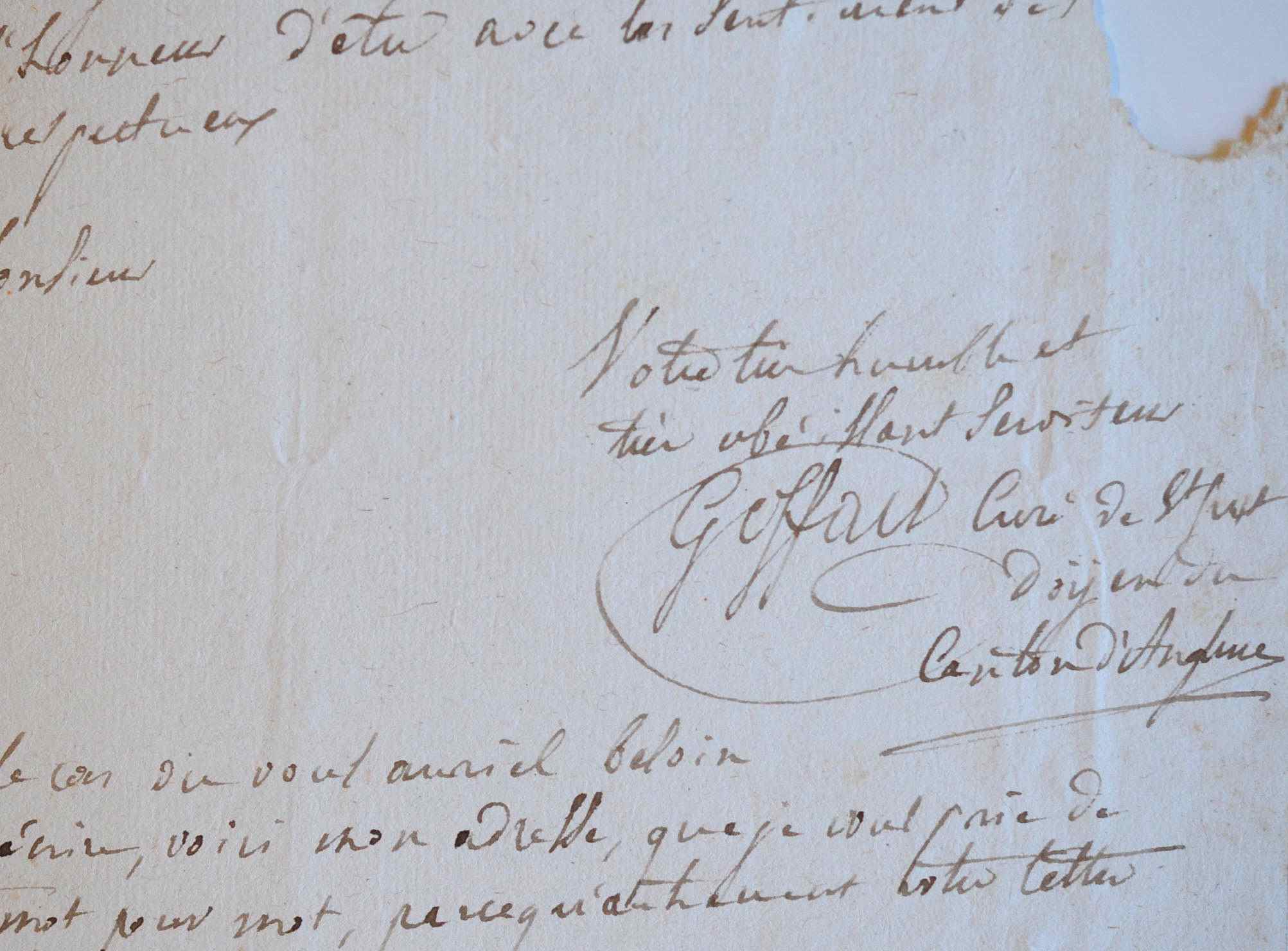Dans cette lettre à l'imprimeur de Sens, M. Tarbé, l'Abbé Goffart "curé de Saint-Just (Marne) et doyen du Canton d'Anglure", prépare la publication de L'Office de Saint-Just : tiré à 300 ou 400 exemplaires, il comprendrait une réflexion de sa main sur « la vie et la mort de nos martyrs », deux proses pour la Première Communion, l'approbation de l'Évêque de Meaux ainsi que l'Office en latin et français. Il espère que cela ne coûtera pas plus de 75 francs.