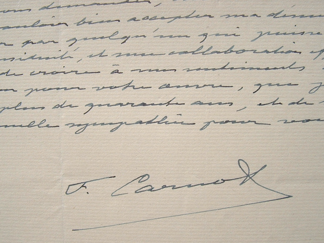 François Carnot, directeur de la Manufacture Nationale des Gobelins, accaparé par ses occupations, donne sa démission du Conseil de l'Assistance par le Travail. «Mes occupations actuelles et mon éloignement me le rendent plus difficile encore, et je me reproche de continuer à occuper un poste où votre confiance m'a appelé et dont je ne remplis pas les obligations [...]».