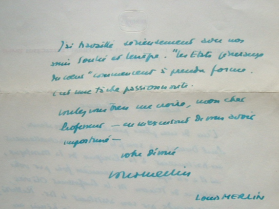 Louis Merlin, directeur-fondateur d'Europe 1, intervient au sujet d'une opération chirurgicale du fils d'un proche collaborateur, qui souffre de complications post-opératoires. Il ajoute : «J'ai travaillé sérieusement avec nos amis Soulié et Lenefre. «"Les Etats généraux du coeur" commencent à prendre forme. C'est une tâche passionnante [...]».