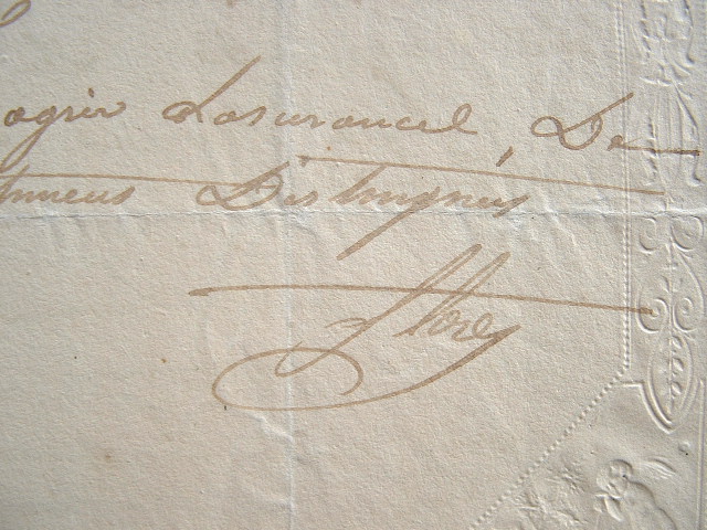 Lettre écrite sur un magnifique papier gaufré aux allégories néo-classiques. Avec un très joli portrait gravé par Jean-Marie Fugère (1818/1882), grand de marges (vers 1860).