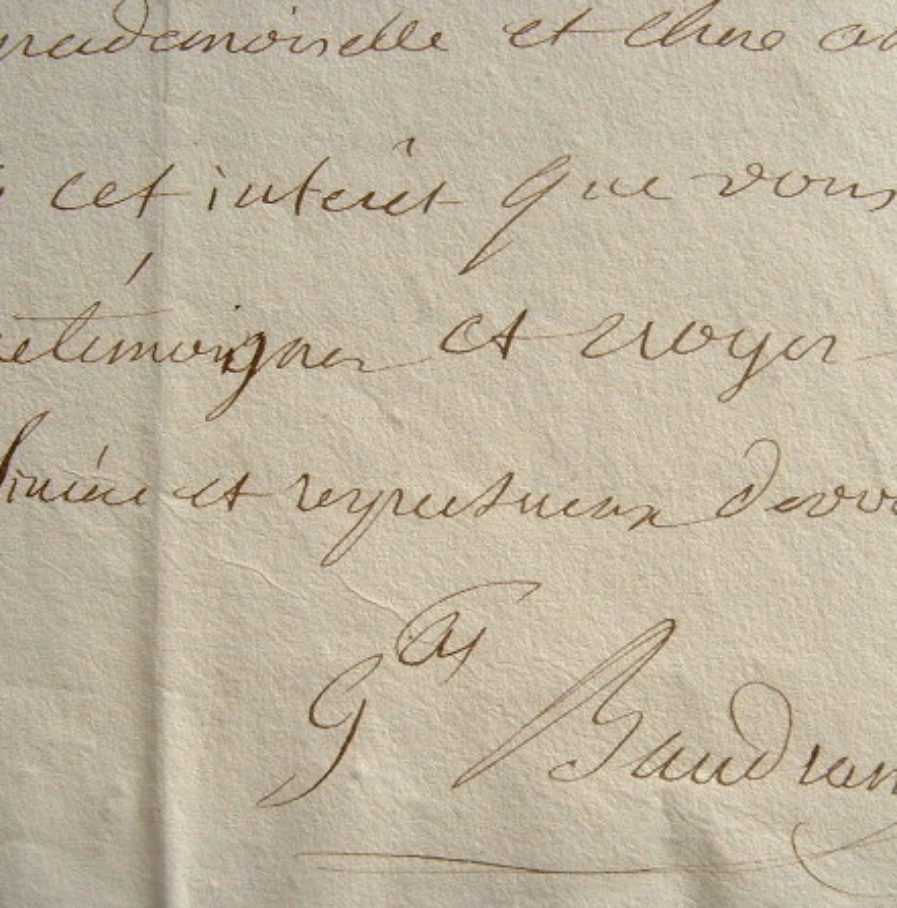 Marie Etienne François Henri Baudrand (Besançon, 1774/1848)Le général Baudrand raconte la tempête traversée avec son navire, lors de sa tentative de traversée d'Alger à Oran. «Hier nous nous sommes confiés au perfide élément, qui présentait un calme séduisant et nous promettait une heureuse traversée jusqu'à Oran. Mais à peine arrivés au Cap Caxime, nous avons été accueillis par un vent et une mer si grosse que, malgré la puissance de notre machine (car vous savez que nous navigons sur un bateau à vapeur, le Castor) que notre batiment allait en dérive, ce qui veut dire que nous reculions au lieu d'avancer, et nous avons été contraints de rentrer dans ce port, où nous voilà attendant que la fureur des flots s'épuise [...]».