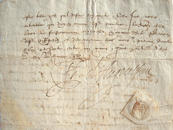 Arbitrage d'un différend survenu au conseil de la ville d'Apt, entre le viguier et le premier consul de la ville. Après s'en être remis aux sieurs de Saint-Maximin et de Vignancourt, Henri d'Angoulême oblige l'un d'eux à des excuses et l'autre à lui déclarer son amitié.