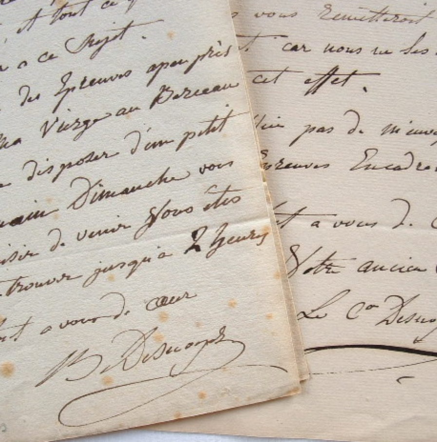 «Je me ravise et vous demande cette petite estampe gravée par Morghen [Rafaello Morghen (1758/1833), graveur italien]. Mettez-là sur mon compte et faites moi le plaisir de me dire à quelle époque elle a été gravée, et tout ce que vous pourrez savoir à ce sujet». Il vient de recevoir les épreuves de sa Vierge au berceau [d'après le tableau de Raphaël, pour lequel Boucher-Desnoyers avait un véritable culte] et invite Chaillou à venir la voir.