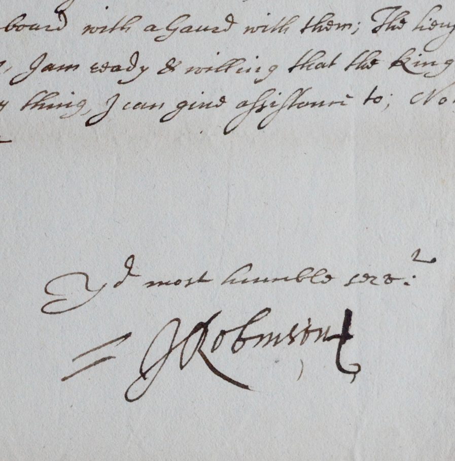 Lettre signée de Sir John Robinson, maire de Londres, à propos d'une altercation avec des marins :