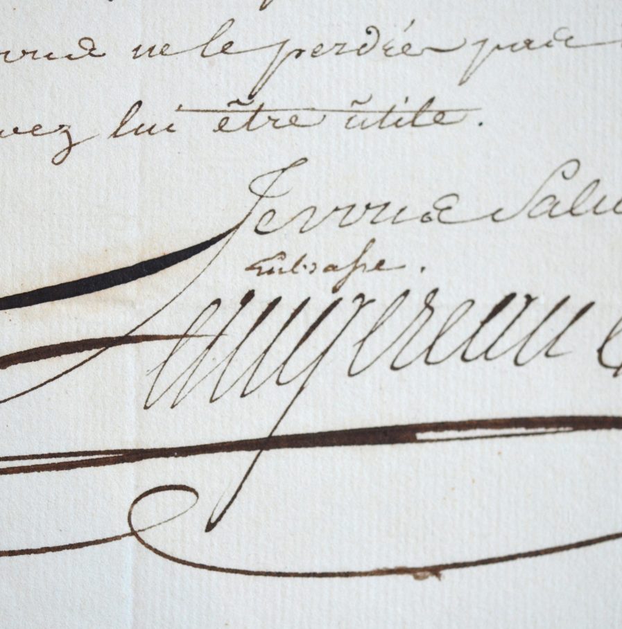 "Le citoyen Lefranc m'a témoigné le désir qu'il a de passer avec vous à la Louisiane, je vous recommande cet officier supérieur, mon cher Général, persuadé que vous ne le perdrez pas de vue si vous pouvez lui être utile". Belle signature.