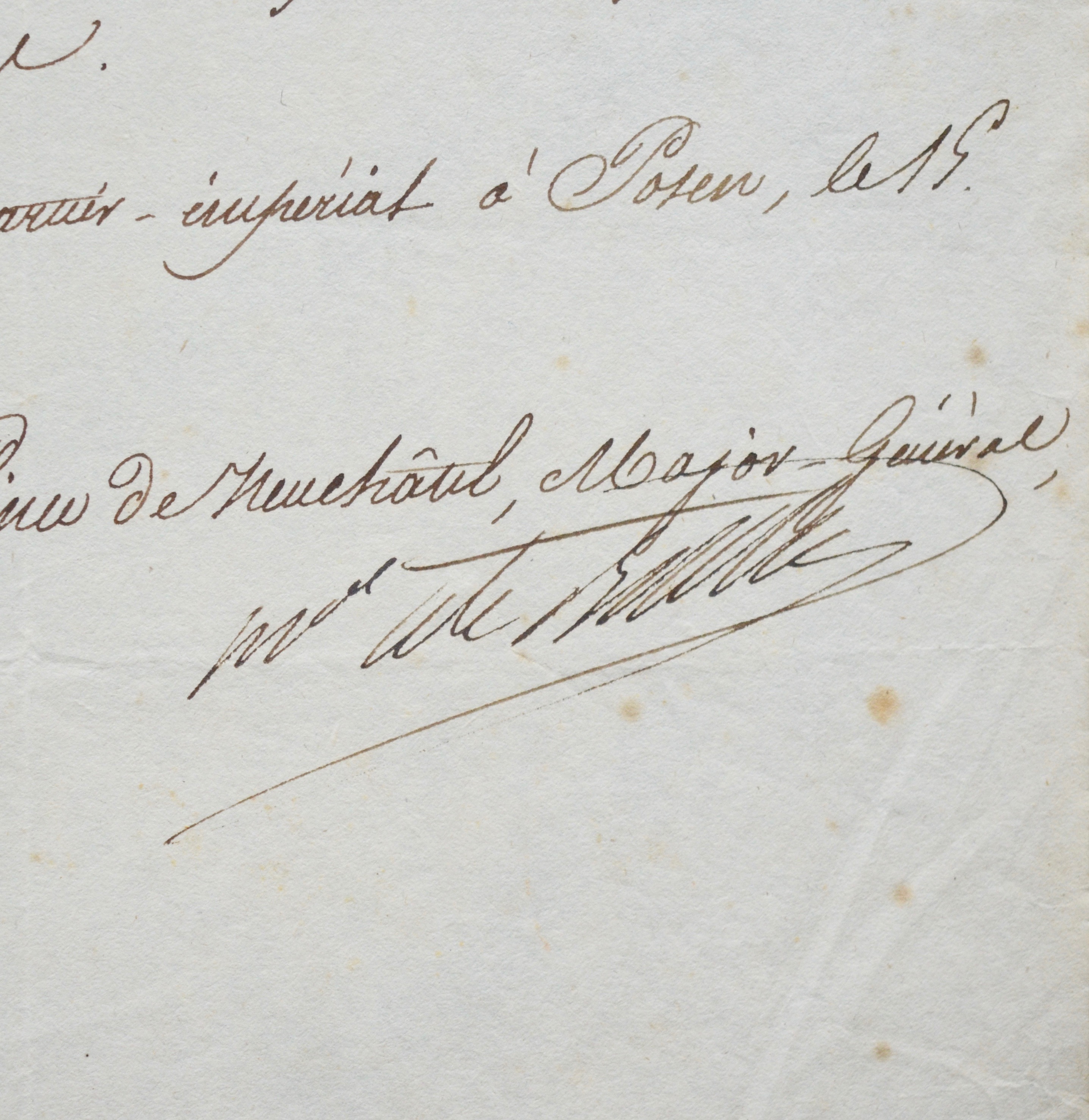 Pièce signée par Louis-Alexandre Berthier : il envoie son employé Rives, à Varsovie, à 300 kilomètres de Poznań (Posen).