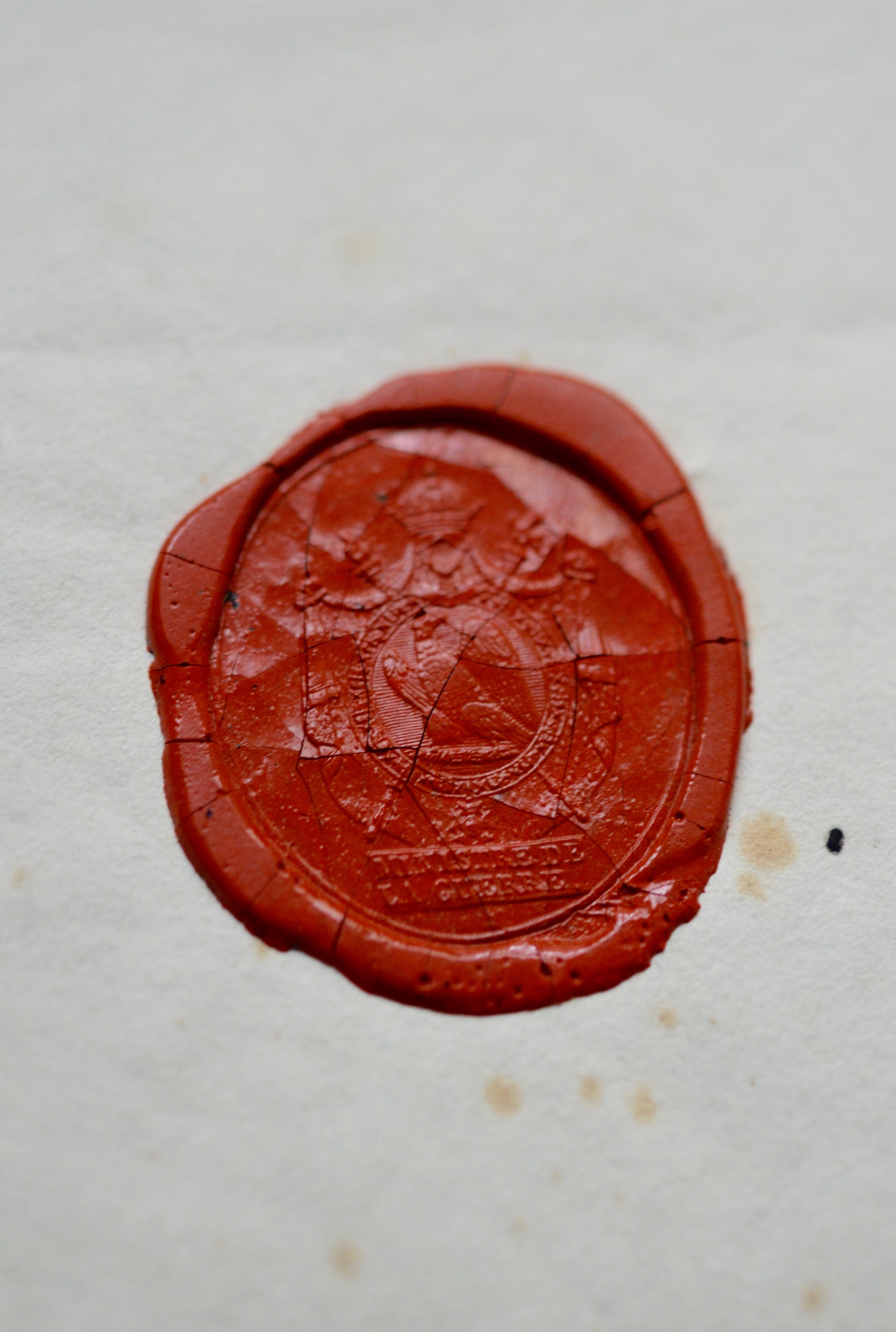 Encre brune sur papier filigrané "Augsburg", à en-tête imprimé "Grande Armée - Ordre de par l'Empereur". Beau cachet de cire rouge conservé avec aigle du Ministère de la Guerre.