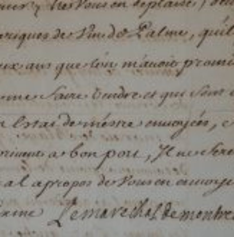 Le maréchal de Montrevel, alors commandant en Guyenne, répond à la lettre de Pontchartrain et accord une exemption particulière pour les sous-syndics de Blaye. "Vous estes un homme admirable, Monsieur, de vous adresser à moy pour une chose qui vous est absolument subordonnée, mais je veux fort bien faire exécuter toutes vos intentions, ainsi vous pouvez assurer celuy qui vous a prié d'exempter de service les sous scindics des travaux des marais de Blaye, qu'on ne les détournera point de leurs travaux, ny pour la garde du pays, ny pour les revues {...]". Mais il profite de l'occasion pour, à son tour, demander une faveur, celle de recevoir les deux barriques de "vin de palme" qu'on lui avait promis voilà deux ans.