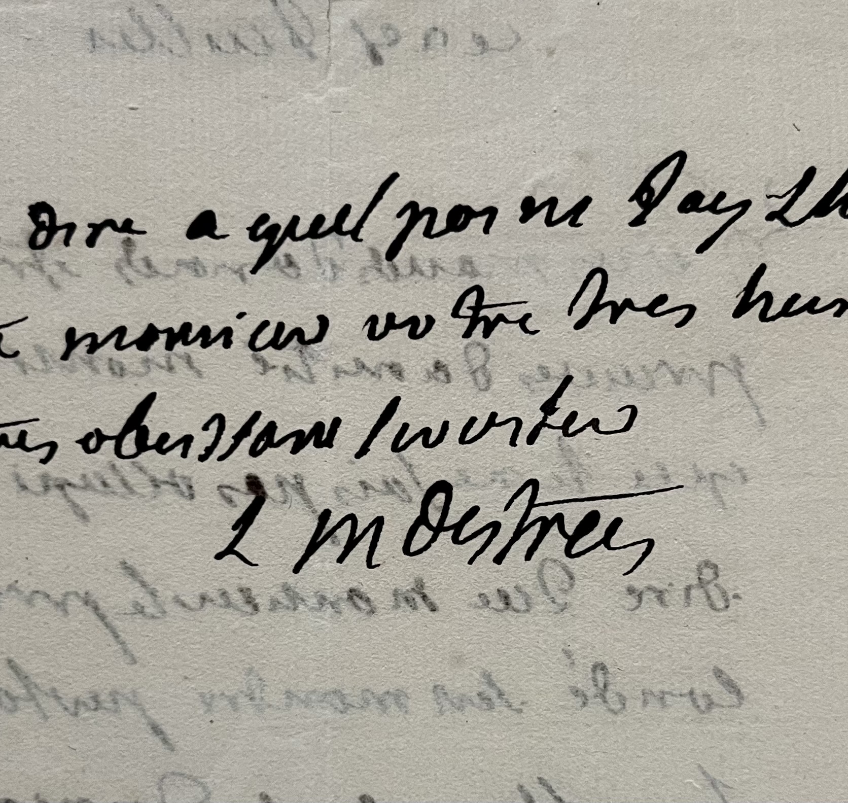 "Vous maves donnes trop de preuves damitié monsieur pour que ie ne sois pas occupé de vous dire que monsieur le prince de Condé sest montré partout de la meilleure grace du monde. Nous avons gagne une bataille dans un terrain bien difficile nous avons fait combattre 16 bataillons sur des montagnes couvertes de bois et telles que sont les plus hautes de Compiègne. Cela nest pas commode pour le coup doeil et pour la cavalerie supérieure. Je ne puis vous dire a quel point jay l'honneur destre monsieur votre tres humble et tres obeissant serviteur LM Destrées".
