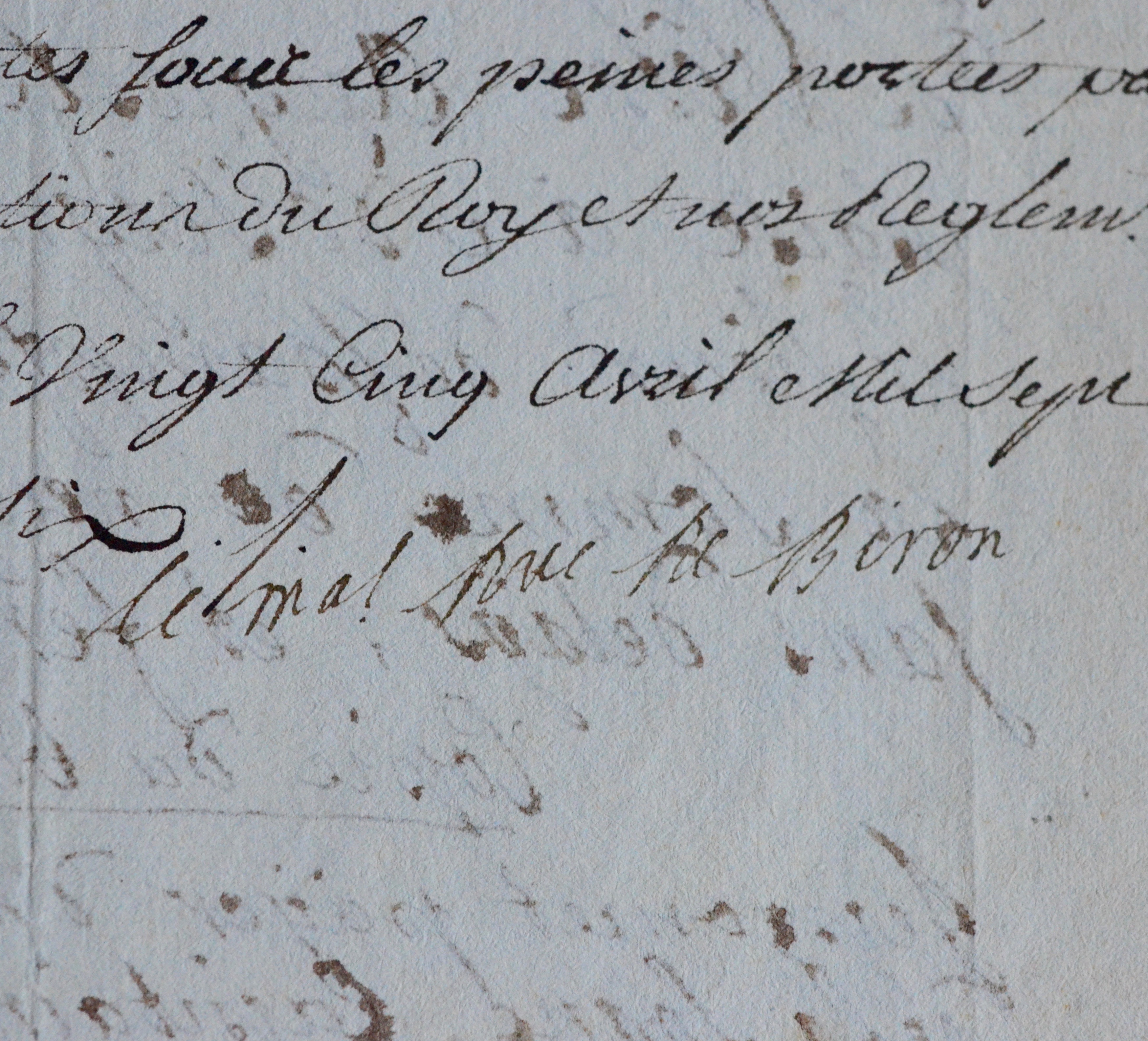 Pièce signée par le maréchal Charles-Armand de Gontaut-Biron, duc de Biron (.
