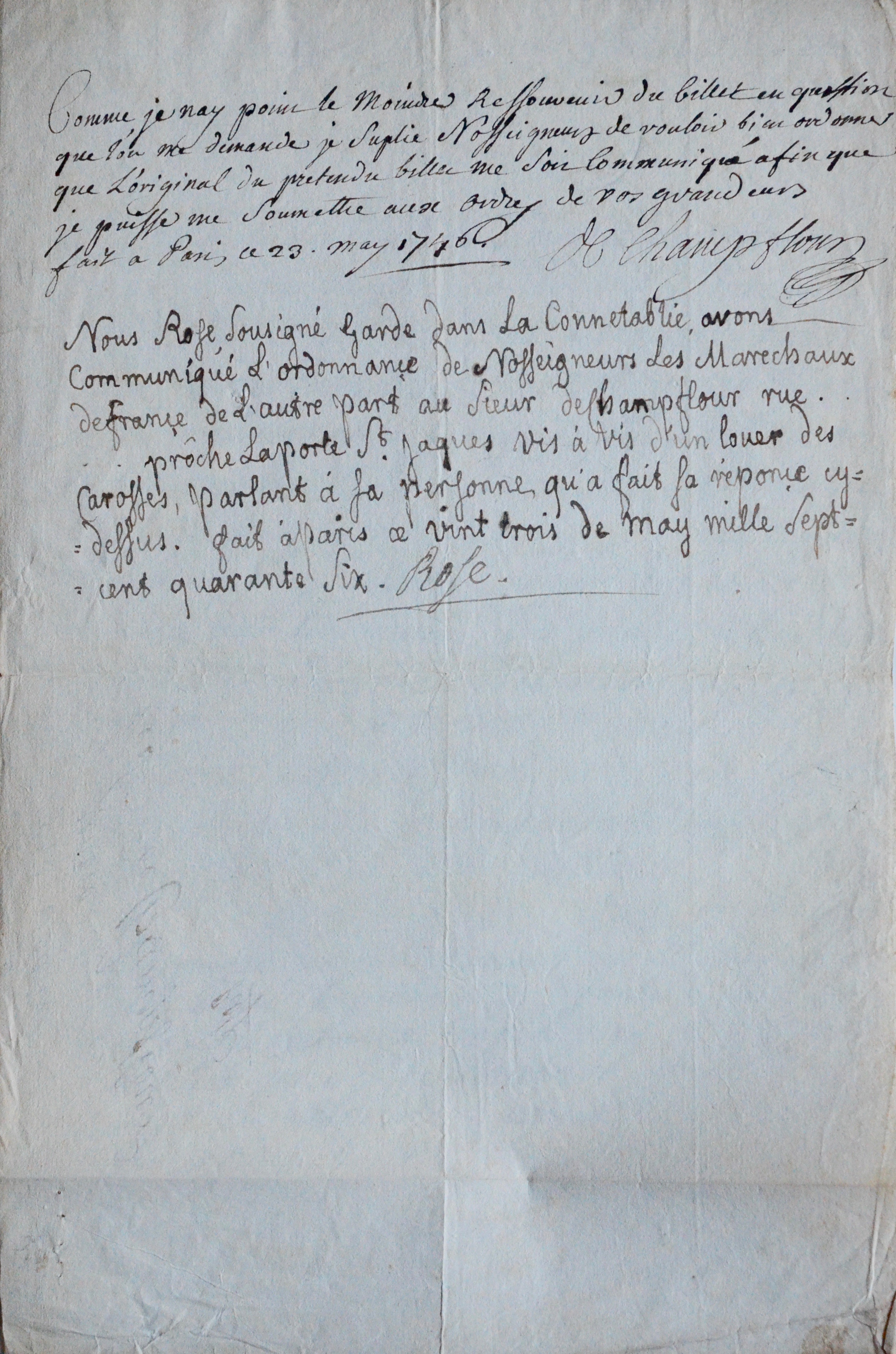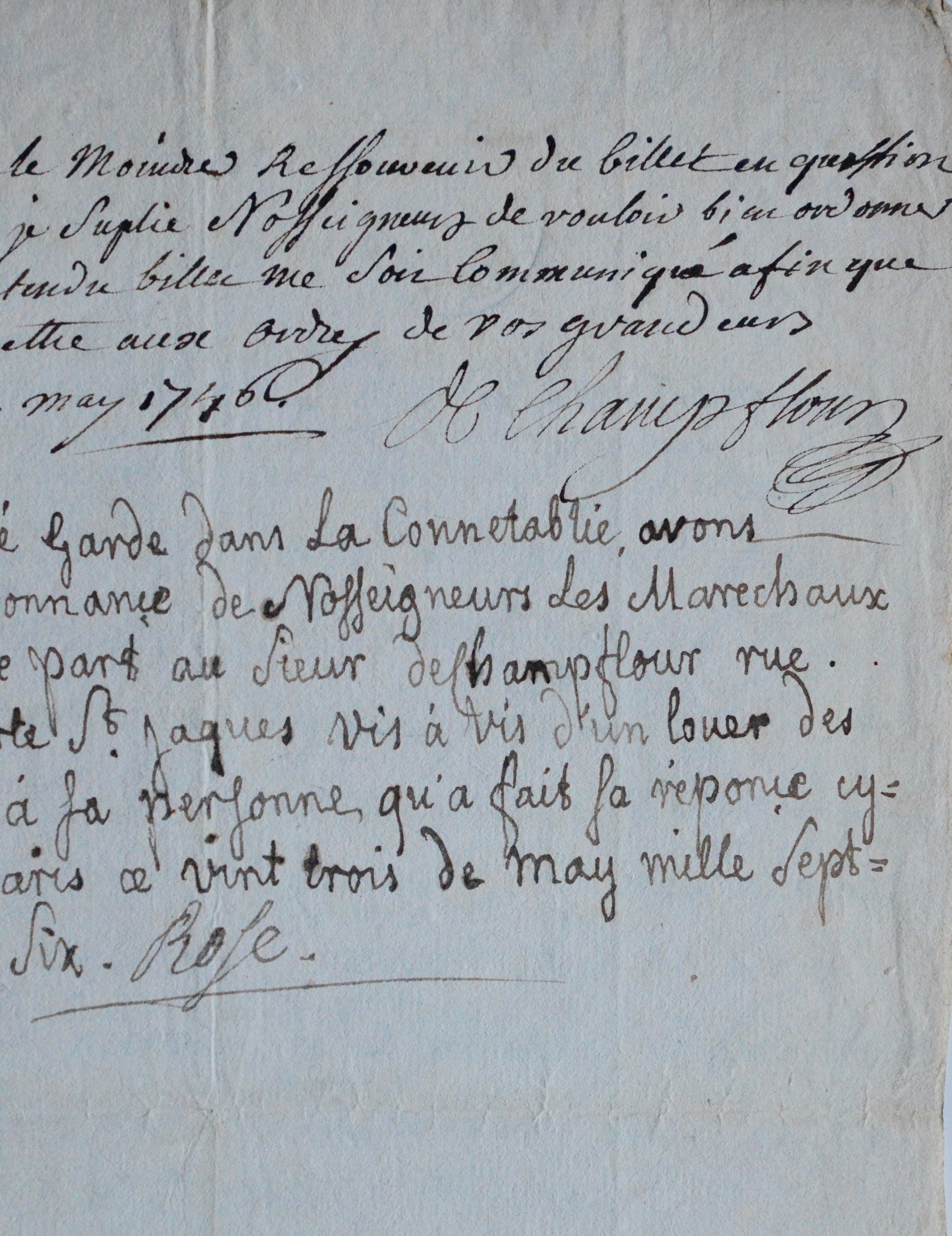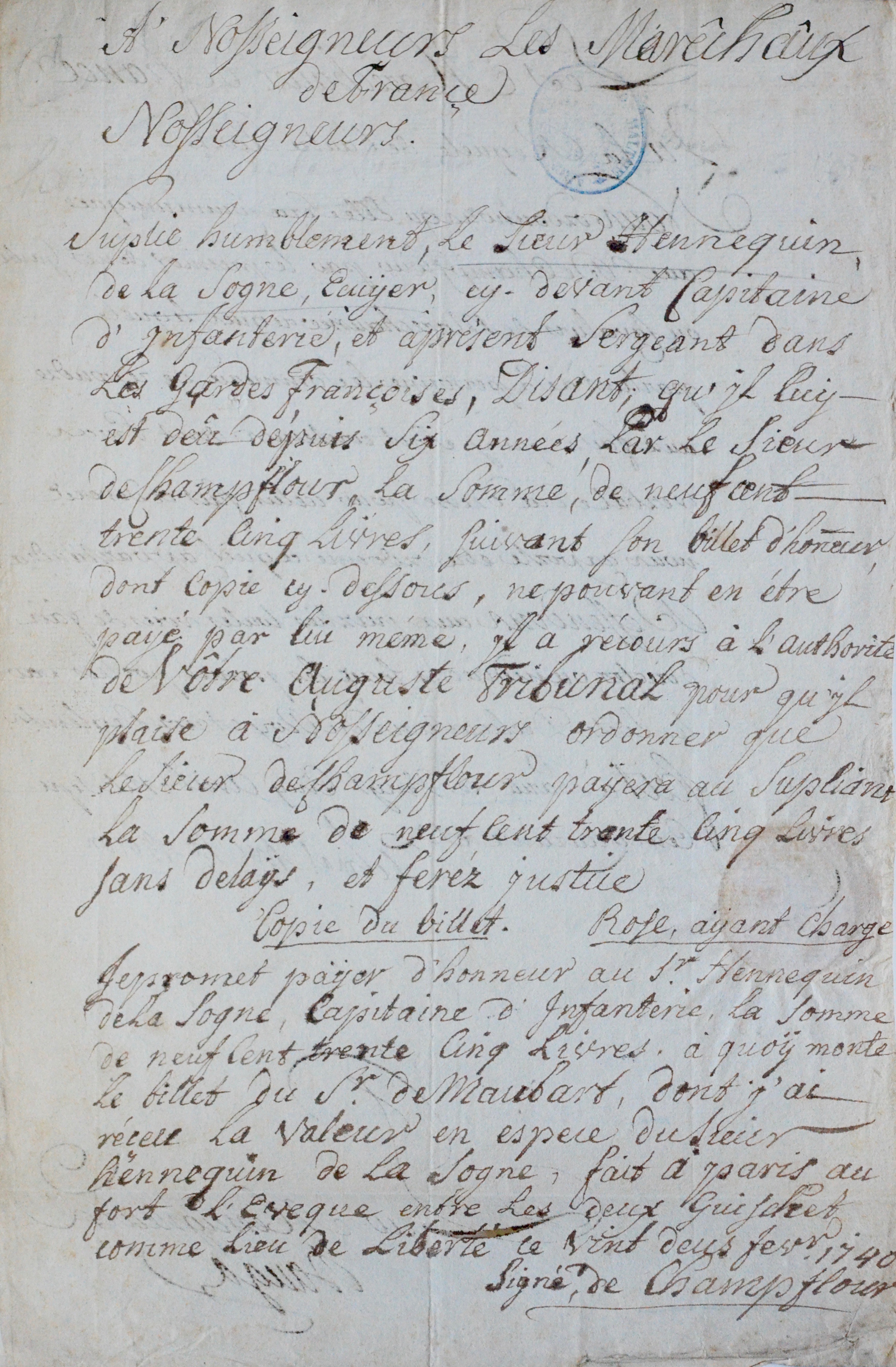 Le maréchal duc de Biron statue sur un différend entre les sieurs Hennequin et Champflour