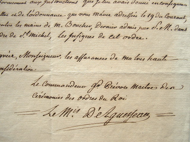 Le marquis d’Aguesseau annonce une admission dans l’ordre de Saint-Michel.