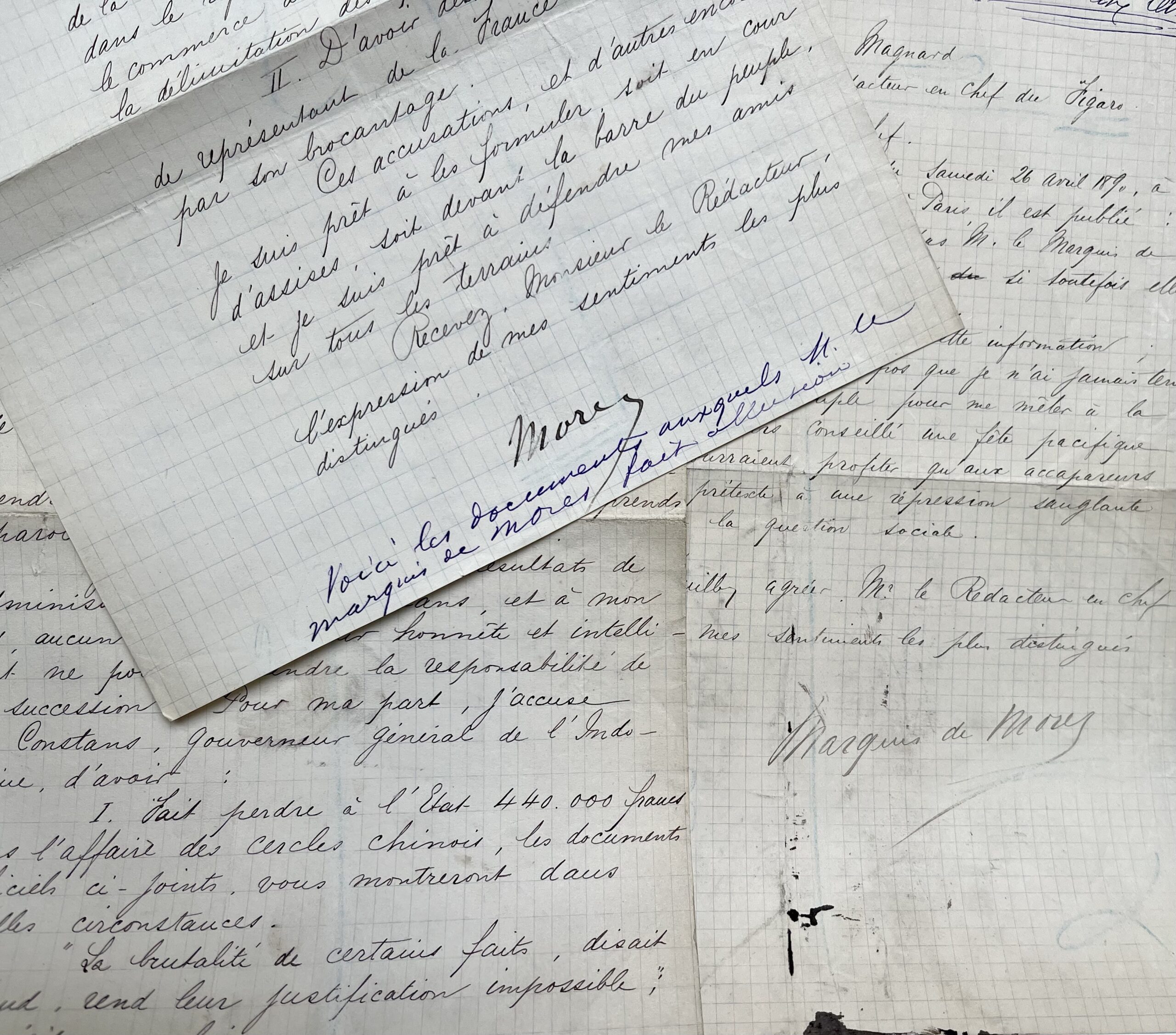 Dans un second courrier (1890), le marquis de Morès dément des propos qui lui sont attribués dans le Figaro :