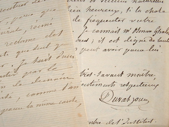 Recommandation pour Osman Ghaleb, «dont vous connaissez déjà les travaux, et qui est membre de la mission égyptienne». [Kamel Osman Ghaleb Pacha]. Dans les deux autres lettres, il est rappelé à Montpellier par le préfet, et décline une invitation à la réunion de la Société botanique.