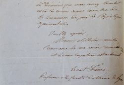 Ernest Faivre (Pontailler-sur Saône, 1827/1879)Sur la publication d'un mémoire sur les Dytiques dans les Annales des Sciences Naturelles. "J'ai l'honneur de vous adresser le travail dont vous avez bien voulu autoriser l'insertion dans les annales des Sciences Naturelles : c'est une suite à deux mémoires insérés précédemment dans le même recueil.