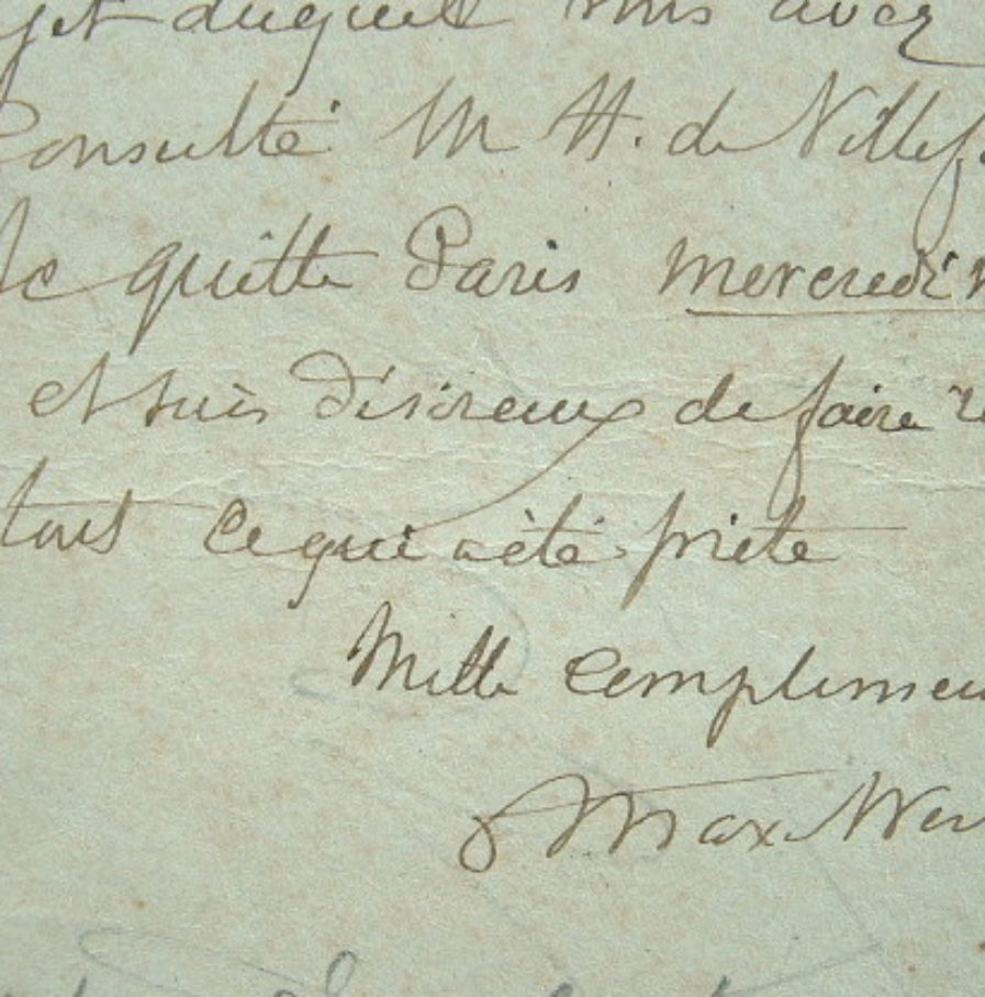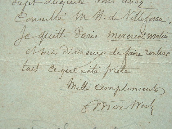 «Veuillez bien me retourner le volume de Jeantin au sujet duquel vous avez consulté M. H. de Villefosse. Je quitte Paris mercredi matin et suis désireux de faire rentrer tout ce qui a été prêté [...]».
