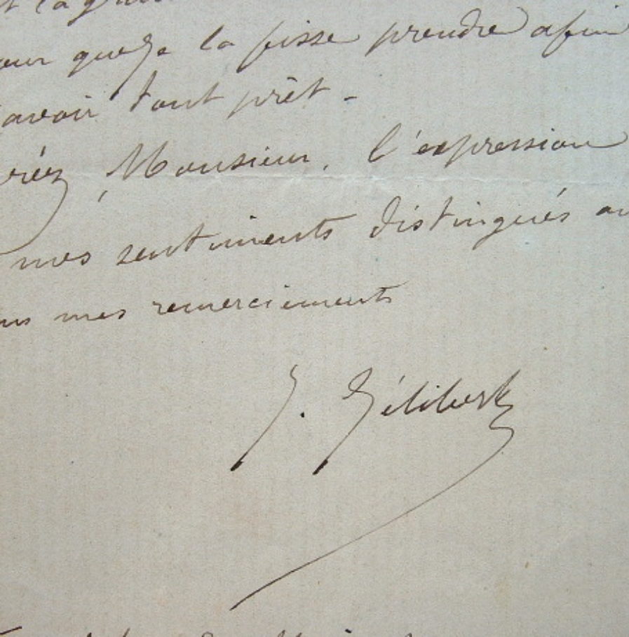 Jules Bertrand Gélibert (Bagnère-de-Bigorre, 1834/1916)Le peintre Jules Gélibert, spécialisé dans les scènes de chasse et d'animaux, donne ses tarifs. «Voici le prix que je demande pour les portraits de chiens. La tête seule grandeur nature 150 francs, le chien entier demi grandeur nature 300 f., le chien entier grandeur nature 400 f. Si votre ami trouve l'un de ces prix à sa convenance, il pourrait envoyer son chien samedi prochain rue Cassini n°6 (près l'observatoire) où est l'atelier de mon père [...]. Je pourrai travailler ce jour là et le lendemain à la même heure. Je reviendrai à Paris dans une huitaine après et terminerai mon étude. Car ce serait peut-être gênant d'envoyer le chien ici ; j'ai bien un chenil bien fermé pour recevoir les chiens qu'on me confie, mais je crois qu'il sera plus commode pour votre ami de m'envoyer le chien à Paris [...]».