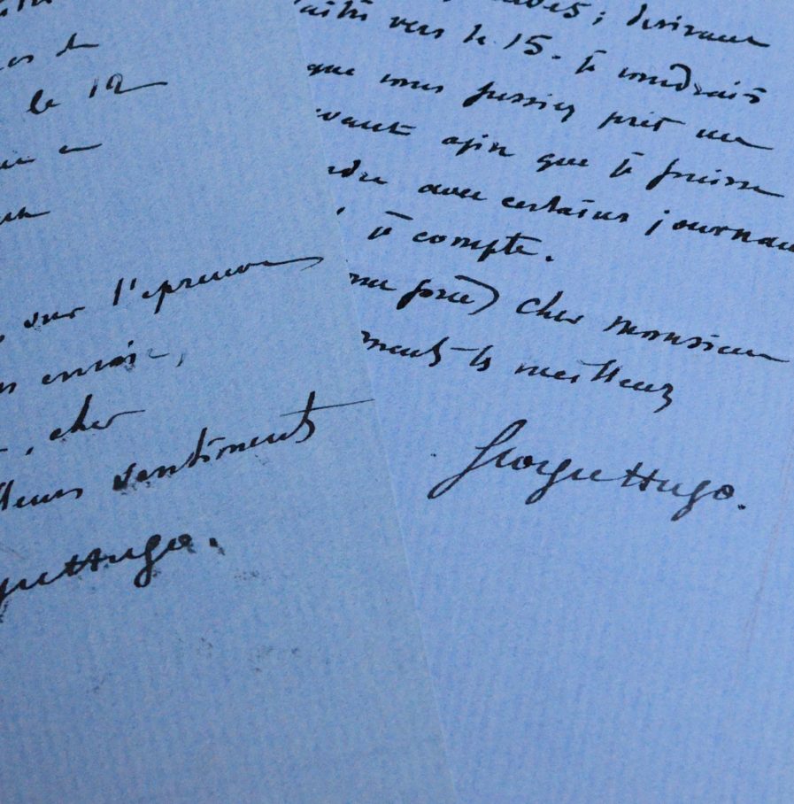 Georges Victor Hugo (Bruxelles, 1868/1925)Deux lettres de Georges Victor-Hugo à son éditeur Eugène Fasquelle : il lui envoie des épreuves corrigées de son ouvrage à paraître Souvenirs d'un matelot.