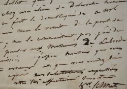 Jean-Victor Schnetz (Versailles, 1787/1870)Dans cette première lettre, le peintre Jean-Victor Schnetz s'explique auprès du député Léon de Laborde au sujet d'un quiproquo. En effet, un peintre du nom de Delaborde [Henri Delaborde 1811-1899] lui a remis un billet concernant un dîner et Schnetz l'a confondu avec son correspondant : « Jai donc naturellement pensé aux Messieurs de Laborde que je connaissais. J'espère Monsieur que vous excuserez cette erreur. » [Les dates d'élection de Laborde à la Chambre permettent de dater cette lettre des années 1841-1842 ou 1846-1848.] Dans la seconde, il s'apprête à rendre visite à un ami : « Je n'avais pas oublié votre bonne et très aimable invitation mais je ne trouvais pas une bonne combinaison pour entreprendre ce petit voyage, mon temps étant morcelé ici par une multitude de petites affaires par l'obligation où j'étais de faire souvent le voyage de Dieppe pour voir une de mes nièces qui habite cette ville depuis 3 mois pour sa santé. Mais voilà que je suis obligé de me trouver à Flers pour le commencement de la semaine prochaine. Je compte donc partir demain jeudi à 11heures comme vous me l'indiquez. »