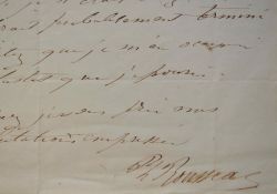 Philippe Rousseau (Paris, 1816/1887)Dans une première lettre énergique, le peintre Philippe Rousseau explique à Pierre-Prosper Souty qu'il veut vernir l'un des ses tableaux avant son exposition : « Vous avez mal compris ou je me suis mal expliqué au sujet de mes tableaux de l'exposition. [...] C'est à la grande basse-cour que je désire faire mettre un vernis à l'eau, répondez-moi à ce sujet. Votre petit tableau est ébauché et si je n'étais assez indisposé, il serait probablement terminé. » Dans il évoque certains de ses confrères : « Si Augier a assisté à la séance où Meissonier a fait l'éloge de Corot, prie le de me l'apporter ! », lance-t-il avec enthousiasme. Puis Rousseau poursuit : « Je lis dans le journal à l'instant que Frémiet succède à Barye au Musée d'histoire naturelle, fais lui mille compliments pour moi et dis lui que j'en suis bien heureux et qu'il le mérite bien ». Emmanuel Frémiet (1824/1910) prit en effet la suite d'Antoine-Louis Barye au poste de professeur de dessin au Muséum d'histoire naturelle.