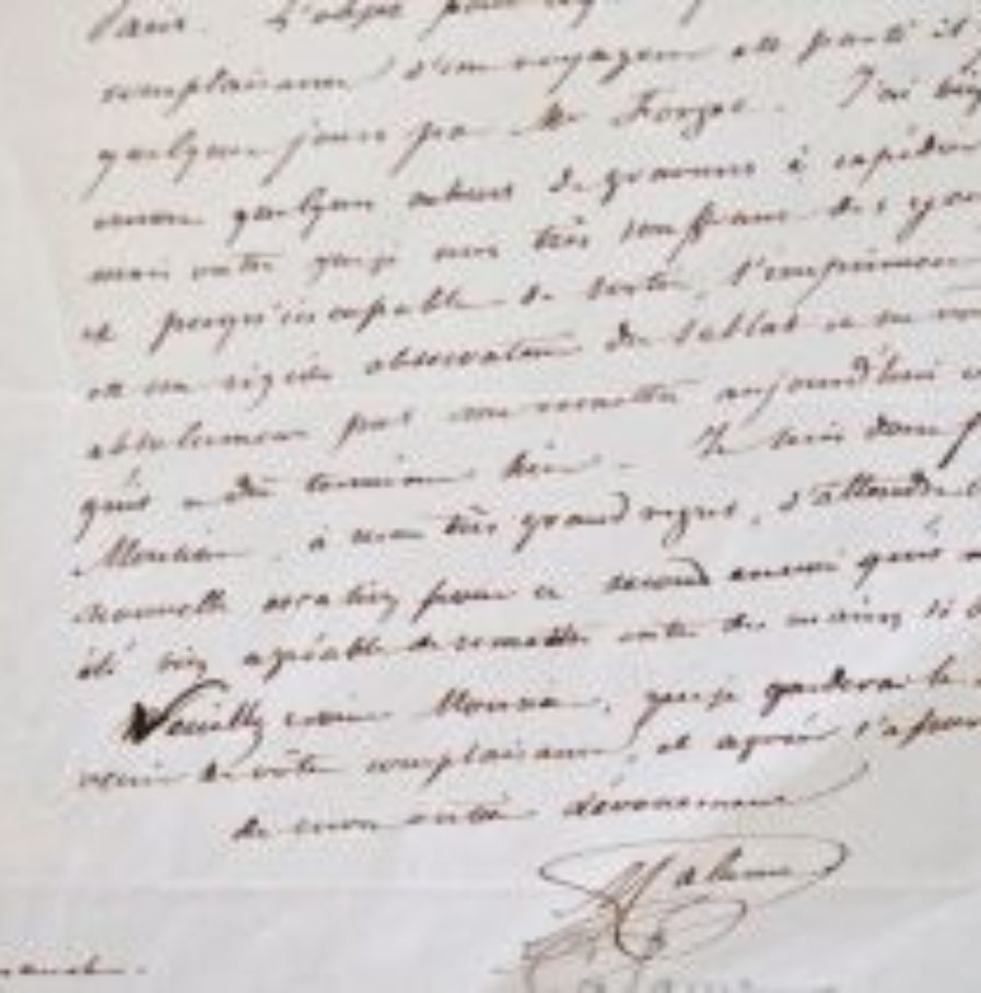 Alexandre Calame remercie son correspondant pour ses offres de service pour Paris, et l'entretient de l'envoi de gravures. "L'objet pour lequel j'ai sollicité la complaisance d'un voyageur est parti il y a quelques jours par Mr Forget. J'ai bien encore quelques cahiers de gravures à expédier, mais outre que je suis très souffrant des yeux et presqu'incapable de sortir, l'imprimeur est un rigide observateur du sabbat et ne voudrait absolument pas me remettre aujourd'hui ce qu'il a dû terminer hier. Je suis donc forcé, monsieur, à mon très grand regret, d'attendre une nouvelle occasion pour ce second envoi qu'il m'aurait été bien agréable de remettre entre des mains si sûres [...]".