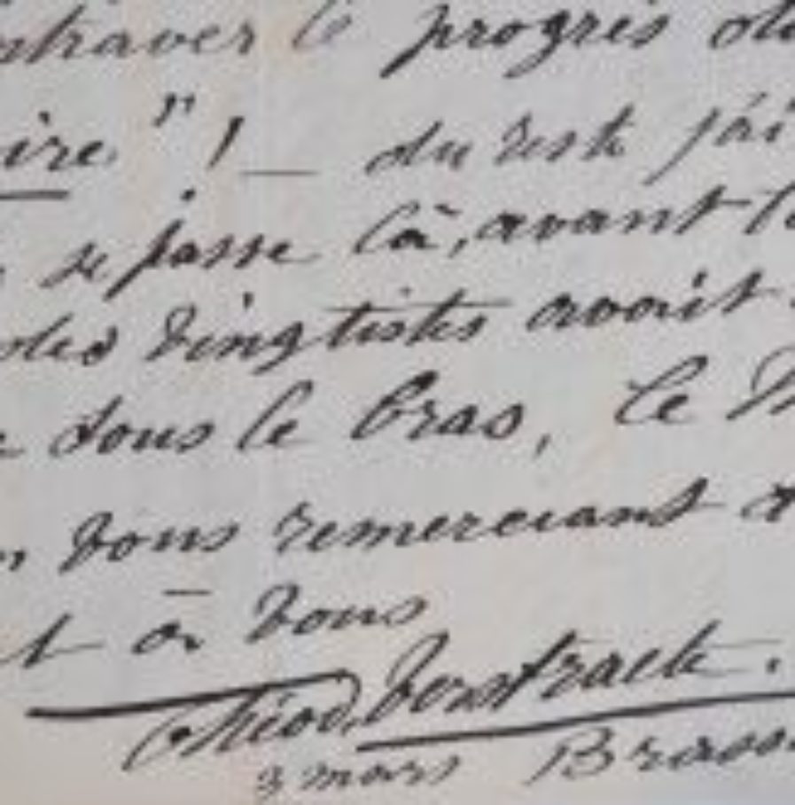 Lettre du peintre Verstraete à son ami le poète Hannon, lui demandant de faire paraître dans La Chronique un texte concernant sa démission du Groupe des XX en 1885 et réaffirmant son indépendance la plus vive : «Vous n'êtes pas sans être au courant de l'attaque contre moi qu'avait organisée le cercle des XX, m'en étant déjà aperçu lors de l'emplacement pour la présente exposition j'avais donné ce jour-là même, en présence de tous les membres, ma démission.» Le groupe des XX, fondé à Bruxelles en 1883, réunissait des artistes d'avant-garde, refusés dans les Salons officiels.