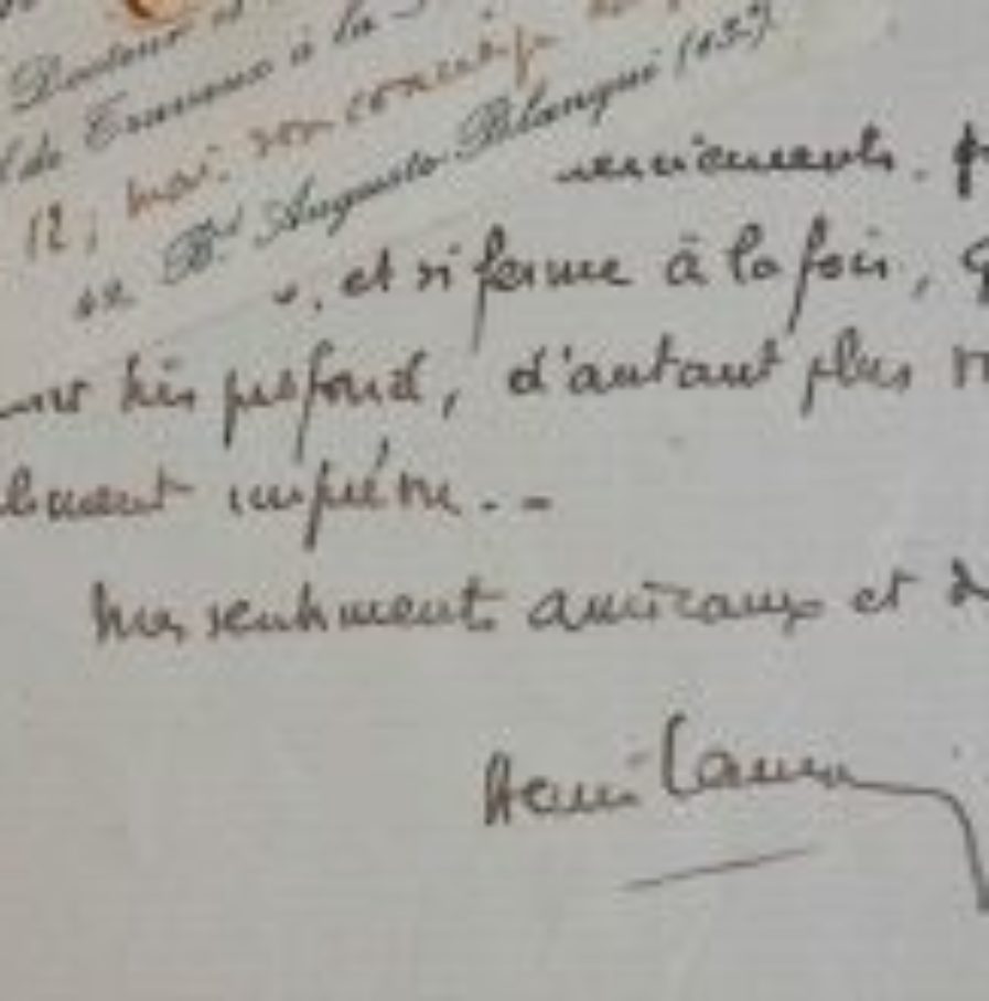 Le physiologiste Henri Laugier sert d'intermédiaire auprès de son ami le député de la Dordogne, Yvon Delbos, pour l'achat d'une oeuvre de Marcel Mouillot. Ainsi, il négocie le prix du tableau qu'il souhaite acheter à l'artiste : «Un de mes bons amis, M. Y. Delbos, s'est beaucoup intéressé aux toiles que vous avez aux Indépendants. Et il me charge de vous demander quel prix vous consentiriez à céder votre petite toile, Paysage de Provence ? En vérité, je crois qu'il n'est guère disposé à dépasser 300 fr ; je sais bien que c'est là un gros sacrifice qu'il demande ; mais si la vente est faite en dehors du Salon, vous n'aurez pas à acquitter les droits et ainsi le sacrifice sera moindre.» [Yvon Delbos (1885-1956) est le futur ministre de L'Instruction publique]. Par ailleurs, Laugier se dit lui-même amateur de l'oeuvre de Mouillot : «Je profite de l'occasion pour vous dire tout l'intérêt que je porte à votre peinture, que j'ai eu l'occasion d'admirer et de suivre depuis plusieurs années.» Le tableau, vendu pour cette somme de 300 fr, devra être livré chez le député, 1 rue Hautefeuille à Paris. Il est joint la carte de visite signée d'Henri Laugier, et celle, portant la mention autographe «Meilleurs remerciements», d'Yvon Delbos.