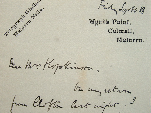 De retour de Clipton, Otto Goldschmidt reçoit les fruits adressés par sa correspondante ; son épouse étant malade, il répond à sa place. «This will explain the delay in reknowledging your kindness - and now I must claim your indulgence for doing what she would have done, and much better [...]».