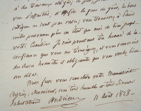 «J'éprouve très souvent le chagrin d'être obligé de refuser la lecture de poèmes, de tragédies, de comédies, d'ouvrages en vers et en prose, tous manuscrits, sur lesquels on me fait l'honneur de vouloir me consulter». Son temps et sa vue déclinante ne lui permettent plus d'effectuer ce travail. Il retourne la comédie écrite par son correspondant.