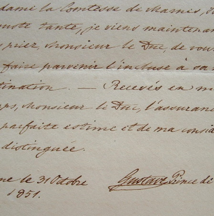 Il accuse réception de la lettre de Frohsdorf et de celle du comte de Chambord, annonçant le décès de la comtesse de Marnes. Il transmet sa réponse par son intermédiaire.