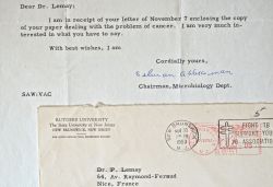 En-tête "Rutgers University - Department of Microbiology". Enveloppe jointe.