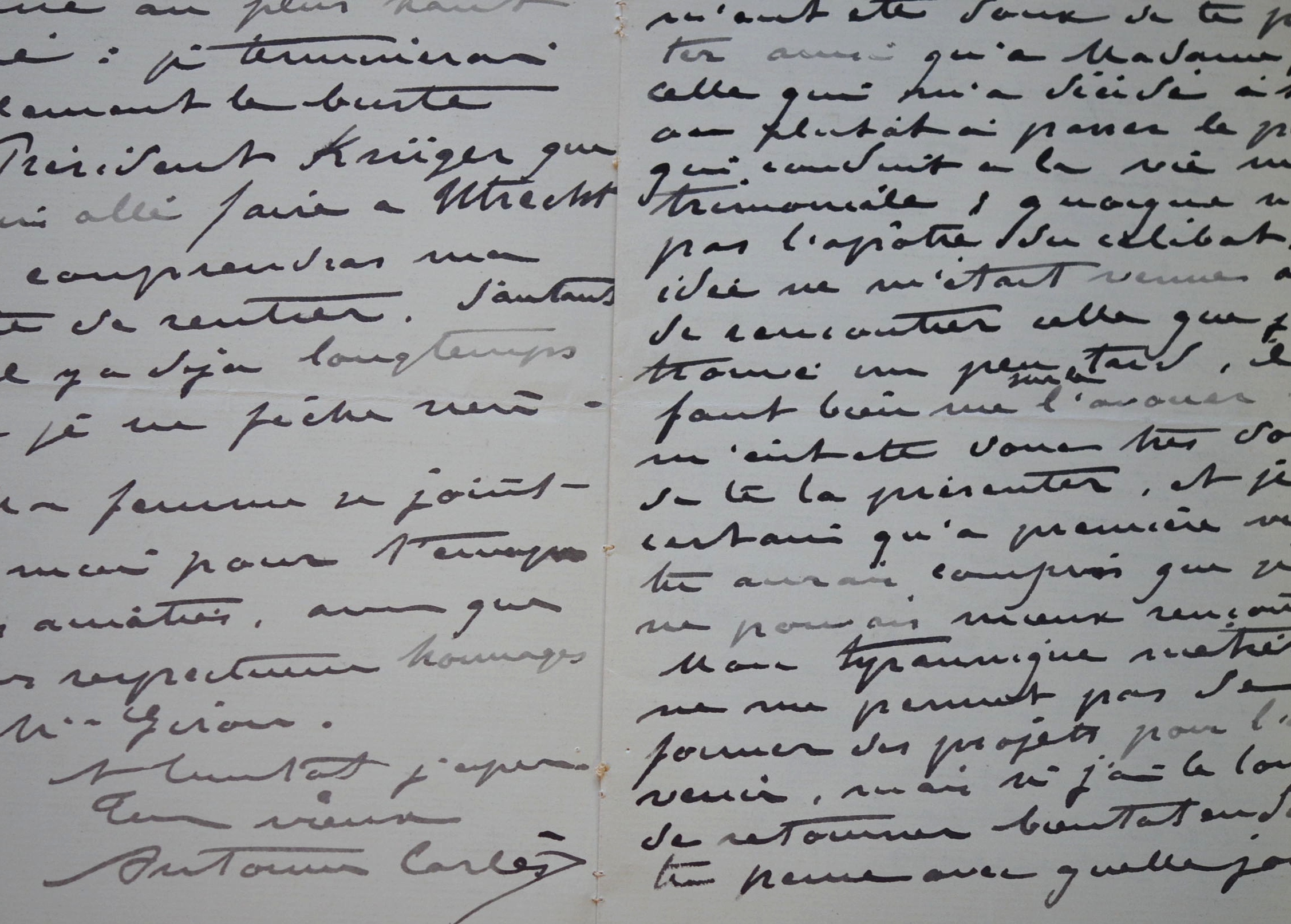 Antonin Carlès (Gimont, 1851/1919)Antonin Carlès explique à son ami Charles Giron qu'il a reçu la commande d'un monument de Mme Hériot, « pour honorer la mémoire de son mari, fondateur de l'Orphelinat de la Boissière, oeuvre de haute charité autant que d'idée élevée et dont la traduction m'intéresse au plus au point » [Monument au commandant Olympe Hériot, 1906, marbre, La Boissière-École (Yvelines), École Hériot]. Il évoque également la découverte, « un peu tard il faut bien l'avouer », des joies de la vie conjugale, ainsi que son voyage en Suisse, dans les terres de Giron : « Notre séjour dans ta patrie n'a été que de quelques petits jours et nous ne sommes pas allés plus loin que Berne qui ne manque pas de caractère mais il y a mieux je le sais, surtout dans vos belles montagnes. Le jour même où nous sommes allés frapper à ta porte, nous avons dîné sur le lac sur le petit îlot qu'a acheté Chasteau près Montreux. Le spectacle là est vraiment merveilleux et nous en avons emporté un souvenir inoubliable. »