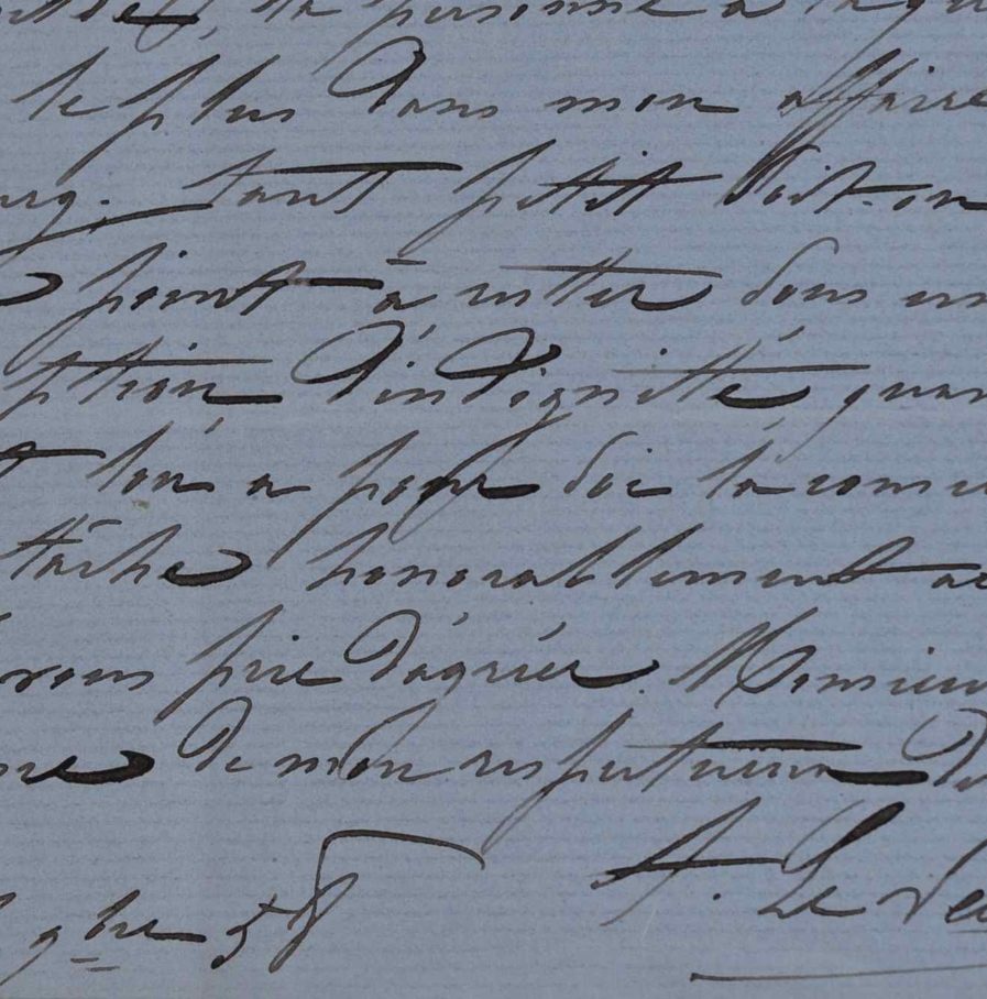 Dans cette lettre, le sculpteur Armand Le Véel remercie son correspondant, M. Blanche, d'avoir proposé de solliciter l'aide du Prince Napoléon (cousin de Napoléon III). Il l'informe également «d'une lettre que j'ai adressée il y a quelques jours à Mme la Princesse Mathilde, la personne à laquelle je dois le plus dans mon affaire de Cherbourg.» Armand Le Véel, auteur d'une statue de Napoléon Ier commandée par la ville de Cherbourg, avait en effet mal vécu en 1858 l'inauguration expédiée de l'oeuvre par Napoléon III, alors en plein rapprochement diplomatique avec la Grande-Bretagne.