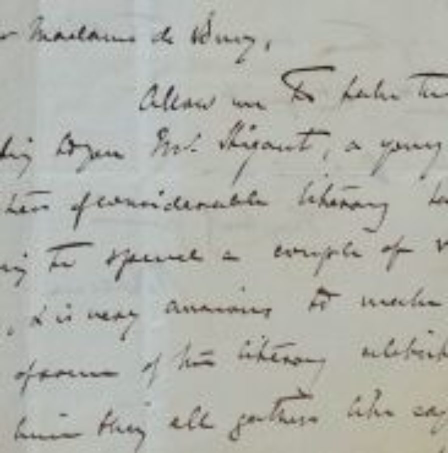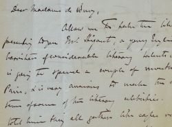 Dans cette lettre, le célèbre ténor anglais Sims Reeves recommande un jeune écrivain, William Stigant (1825/1915), à la baronne Rose Blaze de Bury et la prie de bien vouloir lui ouvrir les portes de son Salon littéraire parisien. On joint une carte autographe signée de Christine Reeves à la même (sur in-16, 27 novembre 1857).