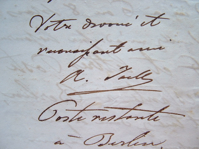 Alfred Jaëll (Trieste, 1832/1882)Le pianiste autrichien Alfred Jaëll, en pleine tournée européenne, annonce à Escudier son triomphe afin qu'il en rende compte dans son journal [La France musicale]. «En quittant Bruxelles, je me suis rendu à Spa où j'ai fait un brillant concert ; il y avait plusieurs princes russes, des grandes familles anglaises, etc., etc. De Spa, je suis allé à Ostende, où j'ai donné deux concerts avec mon ami Denmarck, honorés tous les deux concerts par le prince de Prusse, prince de Hesse, la princesse de Chimay, le prince de Beauffort et plusieurs grandes familles [...]. Partout où j'ai donné concert, j'ai du bisser à chaque concert le Bananier et le Caprice sur Jérusalem». Il annonce la suite de sa tournée qui le mènera jusqu'en Russie ; il ne rentrera à Paris que 6 à 8 mois plus tard. «Tachez donc de faire imprimer mon Caprice sur Jérusalem. Je compte sur votre bonté pour faire un bel article dans votre journal si important [...]».