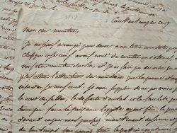 Longue et très intéressante lettre de Saint-Marc, vraisemblablement diplomate, sur la situation effervescente à Constantinople et dans l'Empire Ottoman après la défaite contre les troupes égyptiennes, la mort du sultan Mahmud II et l'arrivée sur le trône d'Abdul-Medjid. Saint-Marc dépeint l'état du pays, explique les visées des Russes sur l'Empire et argumente la nécessité d'une intervention des troupes françaises. «Vous pouvez finir la question égyptienne si vous voulez ; mais pour cela il ne faut pas chicaner sur la victoire d'Ibrahim. Il ne faut pas lui proposer moins que sa fortune [...]. Les propositions de la diplomatie européenne ne seront pas acceptées, elles donnent trop peu [...]. Mais cela nous arrangera-t-il ? Ainsi à vouloir contenir ce qu'on appelle les usurpations de Mehemet Ali, nous aurons la question turque, la question de l'intervention russe [...]. Mais ce qui est grave surtout et d'une gravité de tous les jours et de tous les moments, c'est l'état de ce pays-ci. Il n'y a plus rien, absolument rien. [...] A la moindre révolte de Pacha (et la révolte de la Plata n'est qu'un premier symptôme), à la moindre attaque, il faut appeler les Russes. Il n'y a pas d'autre force, à moins que vous ne veuillez être cette force étrangère dont la Turquie ne peut plus se passer. Il faut que vous preniez l'Empire ottoman sous votre tutelle. Sans cela il tombe aux mains des Russes [...]. Ma politique me laisse à peine la place de vous parler de ce pays ci, le plus beau que j'aie jamais vu. On s'y passerait bien volontiers de l'intérêt des mouvements politiques [...]. Car ce qui est de l'homme est, sauf les mosquées, fort laid et fort chétif. Mais le climat embellit et illumine tout [...]. Vous savez tous les événements d'ici ; le sultan mort, la flotte révoltée, l'armée battue. Viennent les conséquences de ces événements. C'est de cela que de s'occuper de diplomatie [...]. Tout commence et c'est le moment plus que jamais d'armer et d'augmenter le nombre de nos vaisseaux. La flotte est décidée à passer les Dardanelles au premier événement et c'est le seul parti salutaire et digne [...]».