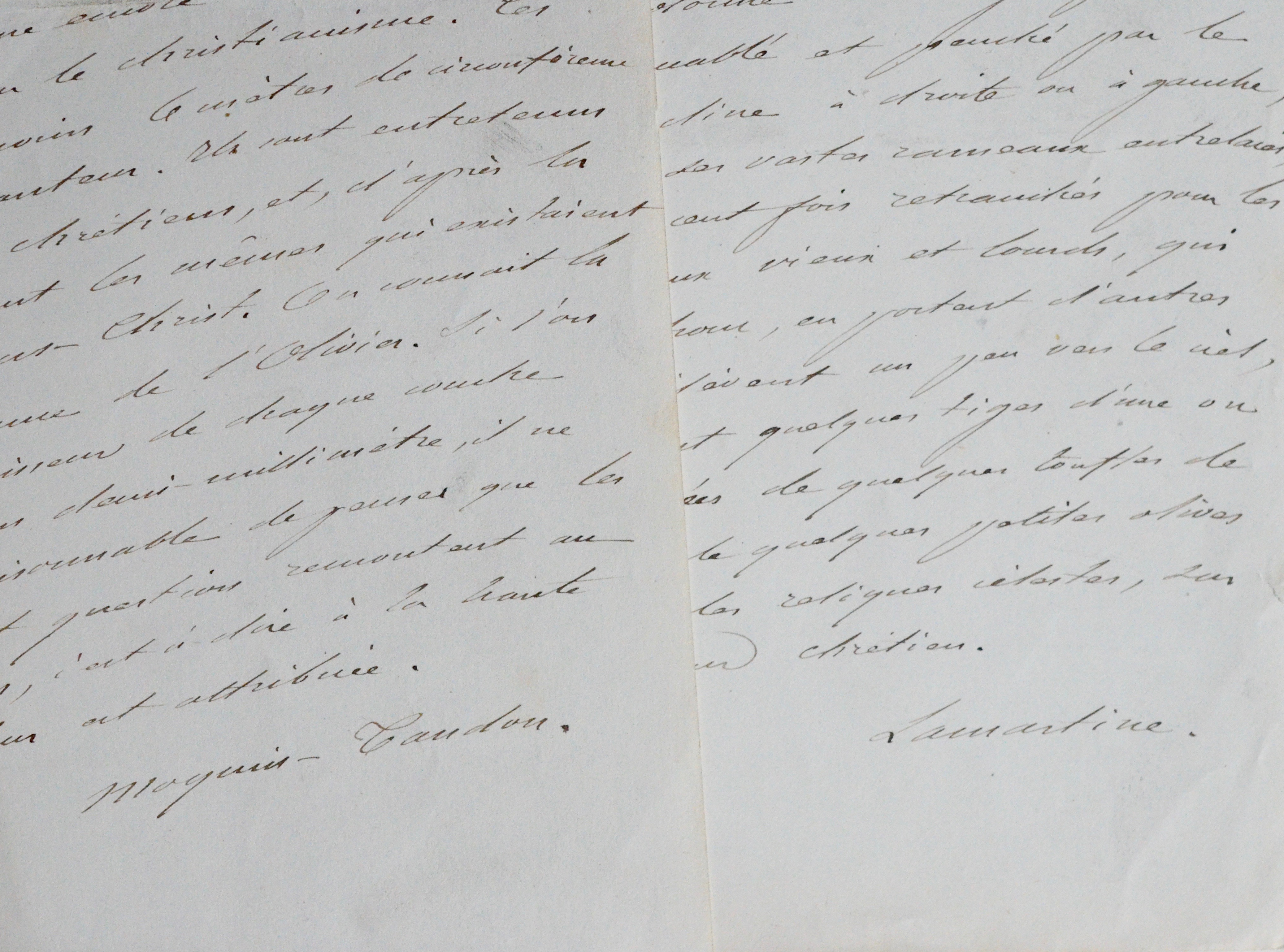 - La seconde, d'un texte d'Alphonse de Lamartine : "A la base du mont des Olives, un petit mur de pierres sans ciment entoure un champ que huit Oliviers, espacés de trente à quarante pas les uns des autres, couvrent presque tout entier de leur ombre. Ces Oliviers sont au nombre des plus gros arbres de cette espèce que j’aie jamais rencontrés : la tradition fait remonter leurs années jusqu’à la date mémorable de l’agonie de l’Homme-Dieu, qui les choisit pour cacher ses divines angoisses. Leur aspect confirmerait au besoin la tradition qui les vénère. Leurs immenses racines ont soulevé la terre et les pierres qui les recouvraient, et, s’élevant de plusieurs pieds au dessus du niveau du sol, présentent au pèlerin des sièges naturels, où il peut s’agenouiller ou s’asseoir pour recueillir les saintes pensées qui descendent de leurs cimes silencieuses. Un tronc noueux, cannelé, creusé par la vieillesse comme par des rides profondes, s’élève en large colonne [...]".