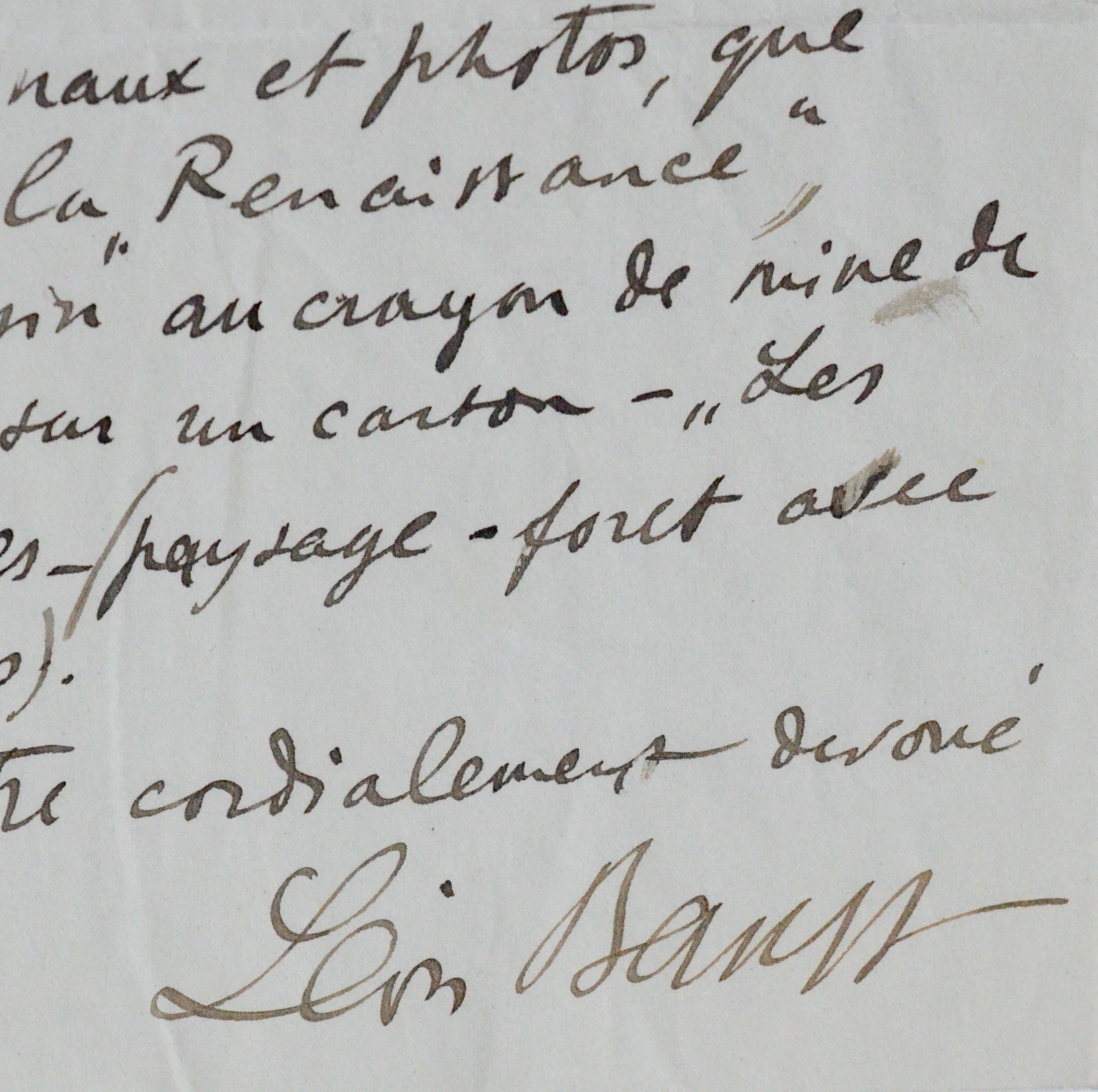 Encre noire sur feuillet double. En-tête imprimé au chiffre LB surmonté d'une étoile et adresse du "112, boulevard Malesherbes"