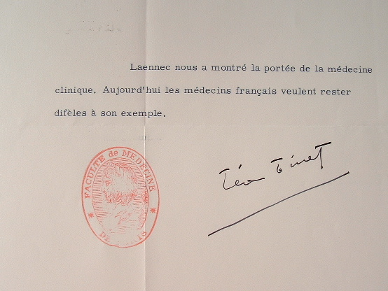 Léon Binet livre une pensée : «Laennec nous a montré la portée de la médecine clinique. Aujourd'hui les médecins français veulent rester fidèles à son exemple».